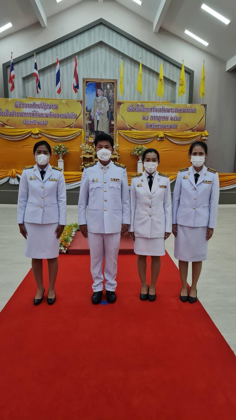 นายชัยศิริ ผูกใจเพื่อน ผู้อำนวยการแขวงทางหลวงกำแพงเพชร นำคณะข้าราชการ และเจ้าหน้าที่ในสังกัด กล่าวคำถวายสัตย์ปฏิญาณ เพื่อเป็นข้าราชการที่ดีและพลังของแผ่นดิน
