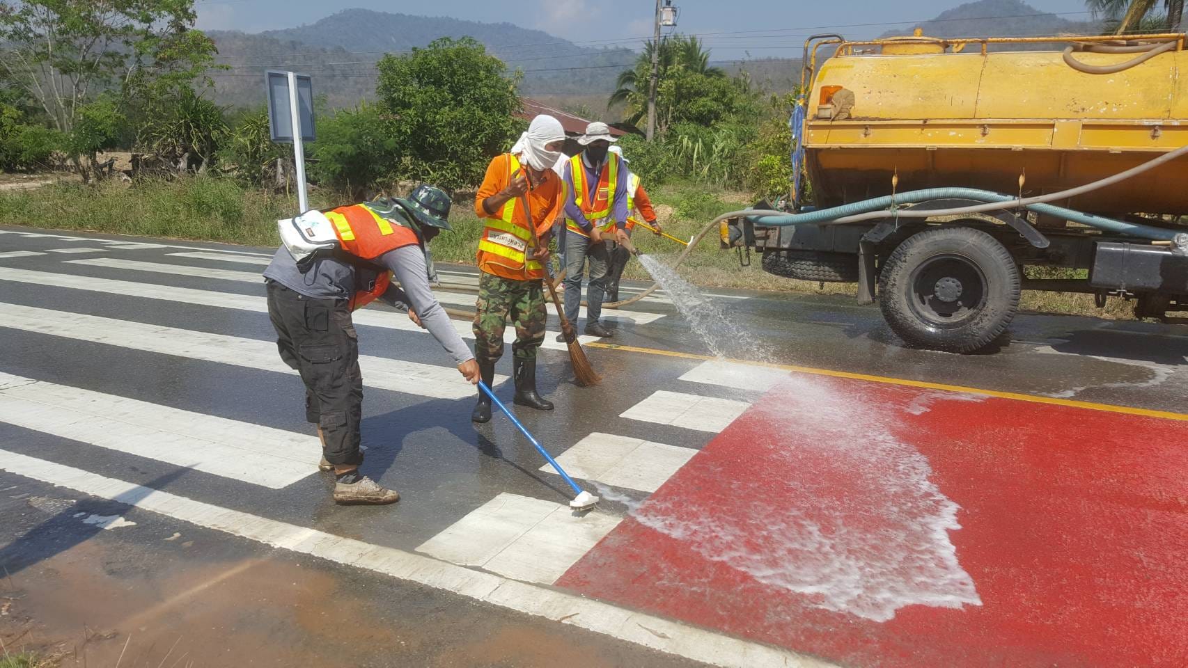 แขวงทางหลวงกำแพงเพชร ดำเนินการปรับปรุงทางม้าลาย โดยดำเนินการตีเส้นและทำความสะอาด เพื่อความปลอดภัย และเพื่อป้องกันอุบัติเหตุบนทางหลวง