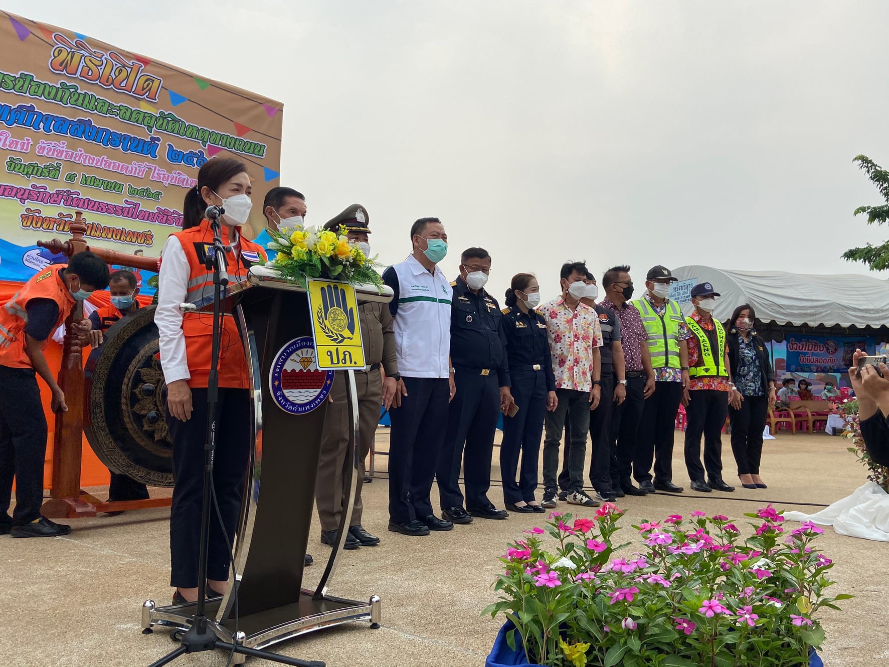 นายชัยศิริ ผูกใจเพื่อน ผู้อำนวยการแขวงทางหลวงกำแพงเพชร นำคณะเจ้าหน้าที่แขวงฯ ร่วมพิธีเปิดศูนย์ปฏิบัติการป้องกันและลดอุบัติเหตุทางถนนช่วงเทศกาลสงกรานต์ พ.ศ.2565