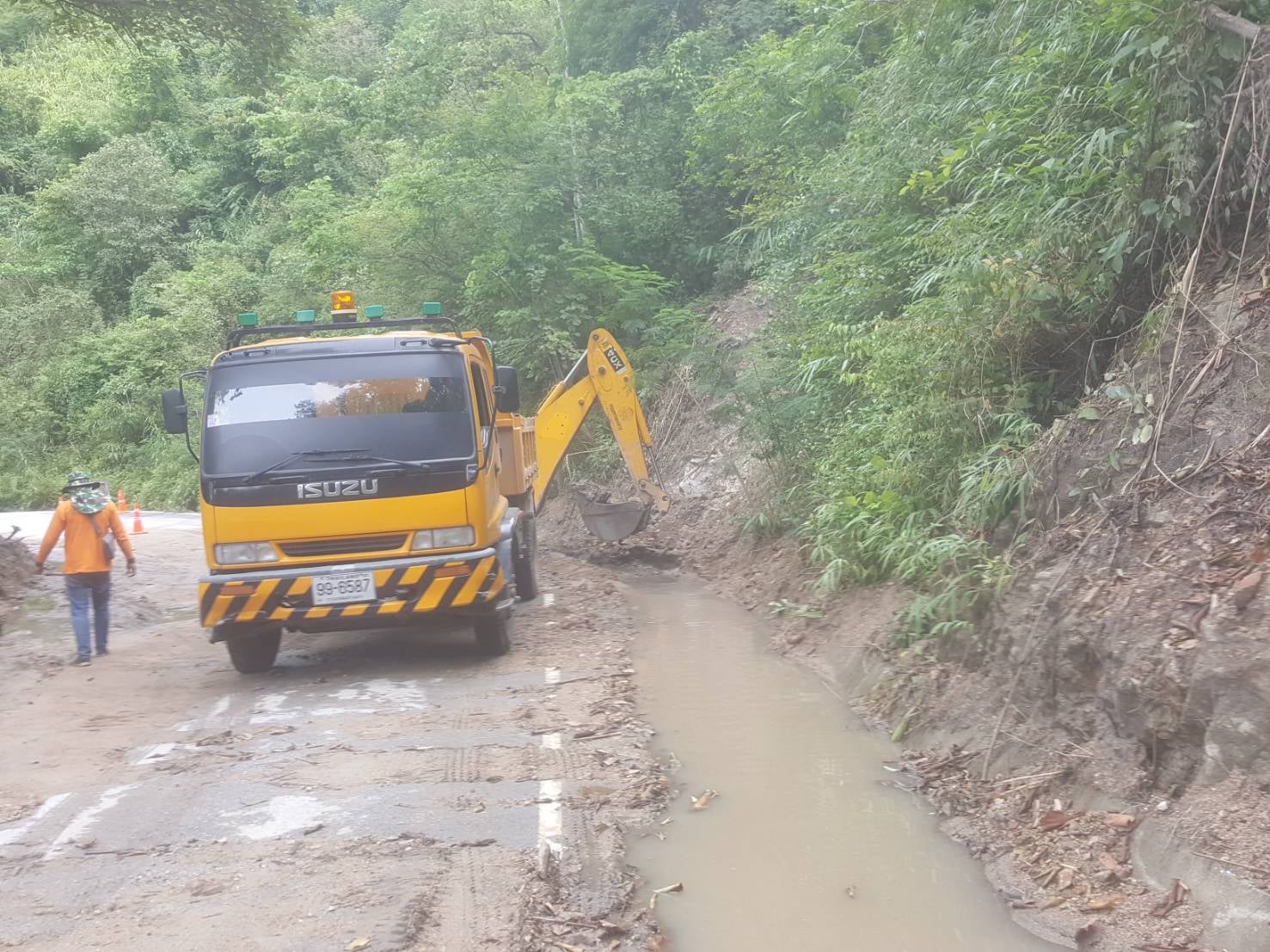 ข่าวประชาสัมพันธ์แขวงทางหลวงกำแพงเพชร วันที่ 15 ตุลาคม 2564 "แขวงฯ ดำเนินการเคลียร์จุดพื้นที่ดินสไลด์, ขุดลอกทางระบายน้ำ"