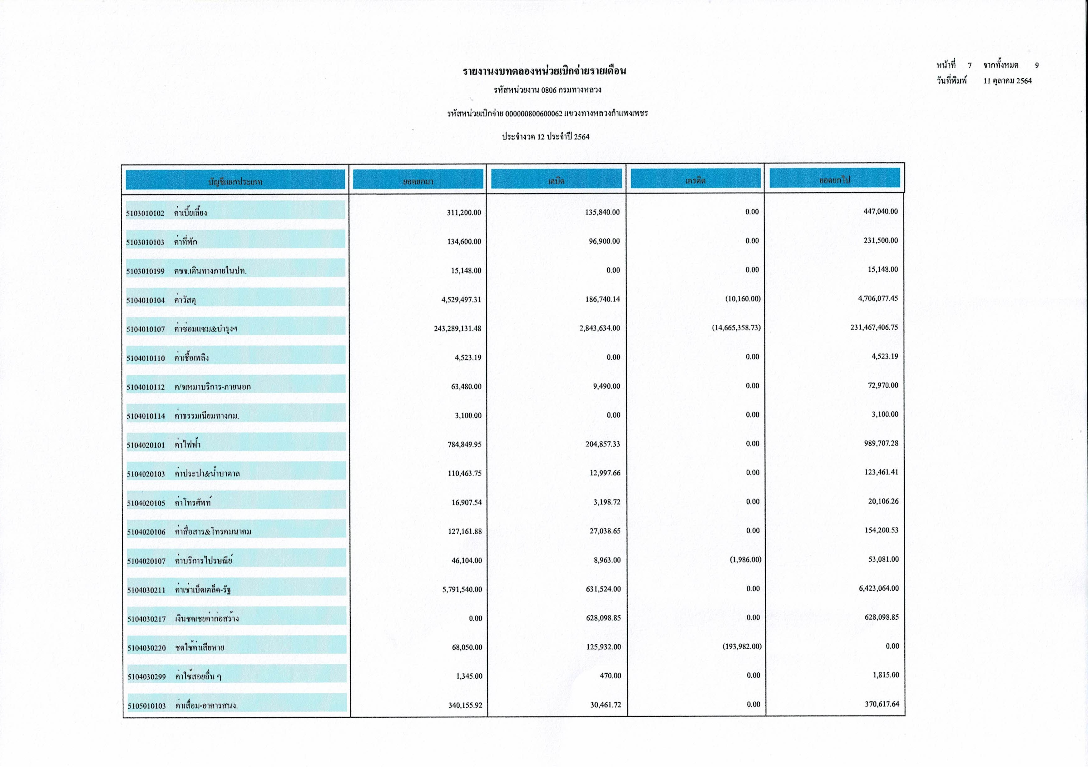 แขวงทางหลวงกำแพงเพชร แจ้งประชาสัมพันธ์รายงานงบทดลองปีงบประมาณ 2564