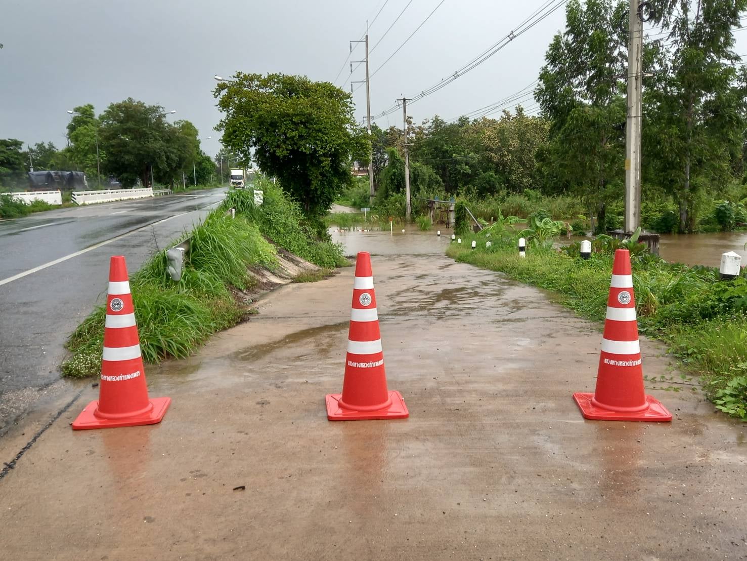 รายงานสถานการณ์น้ำท่วม วันที่ 23 กันยายน 2564 ทางหลวงหมายเลข 1 ตอนโนนปอแดง-ปากดง ต.สลกบาตร อ.ขาณุวรลักษบุรี จ.กำแพงเพชร