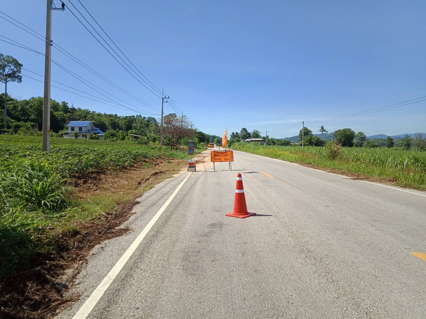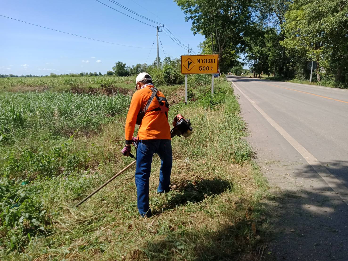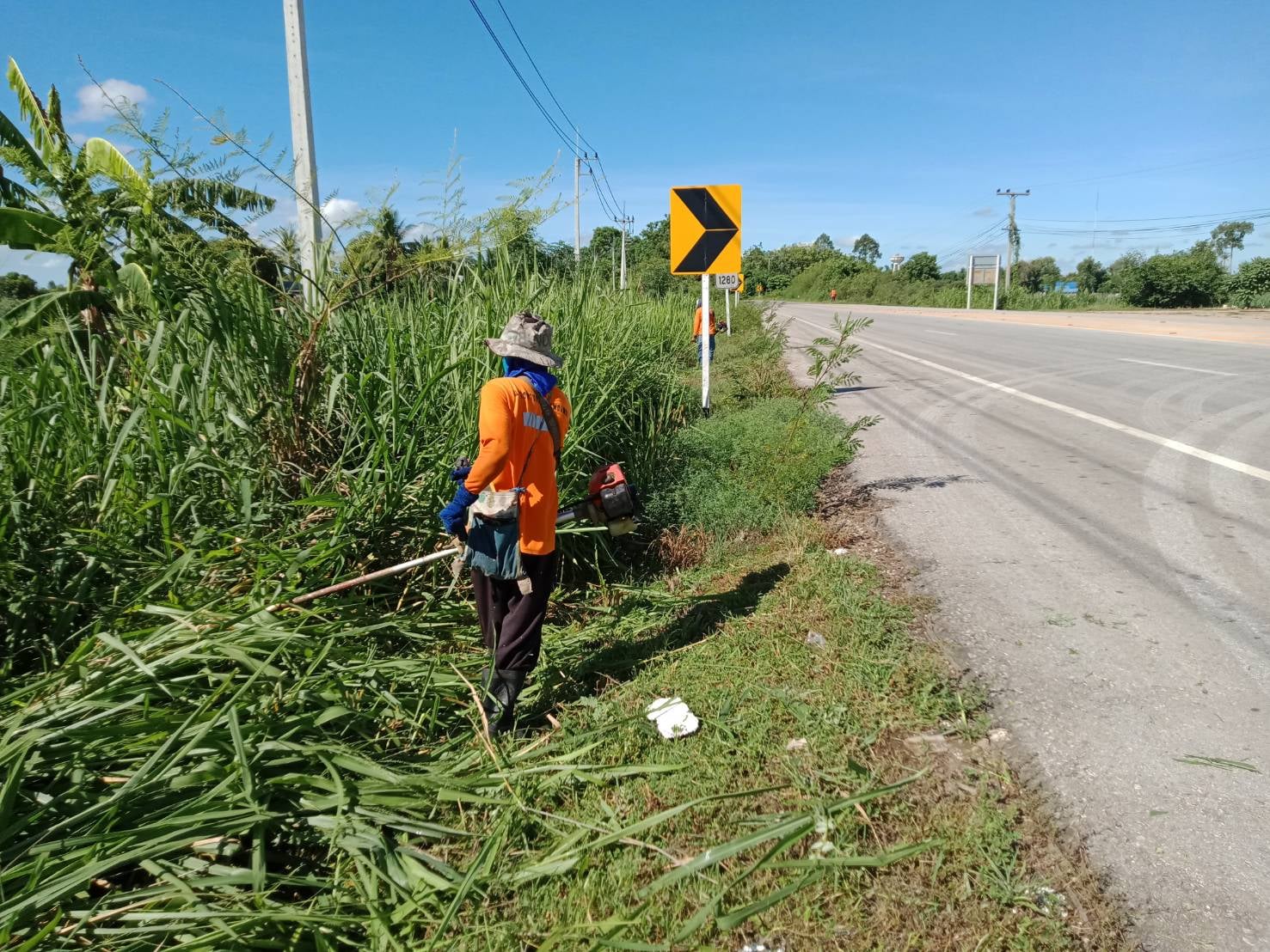 ข่าวประชาสัมพันธ์ "หมวดทางหลวงบ่อทอง ตัดต้นไม้ที่หักโค่นและทำความสะอาดผิวทาง"