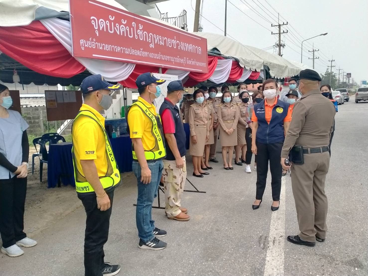 นายชัยศิริ ผูกใจเพื่อน ผู้อำนวยการแขวงทางหลวงกำแพงเพชร ร่วมกับคณะจังหวัด เข้าตรวจเยี่ยมจุดบริการประชาชนในช่วงเทศกาลสงกรานต์ 2564