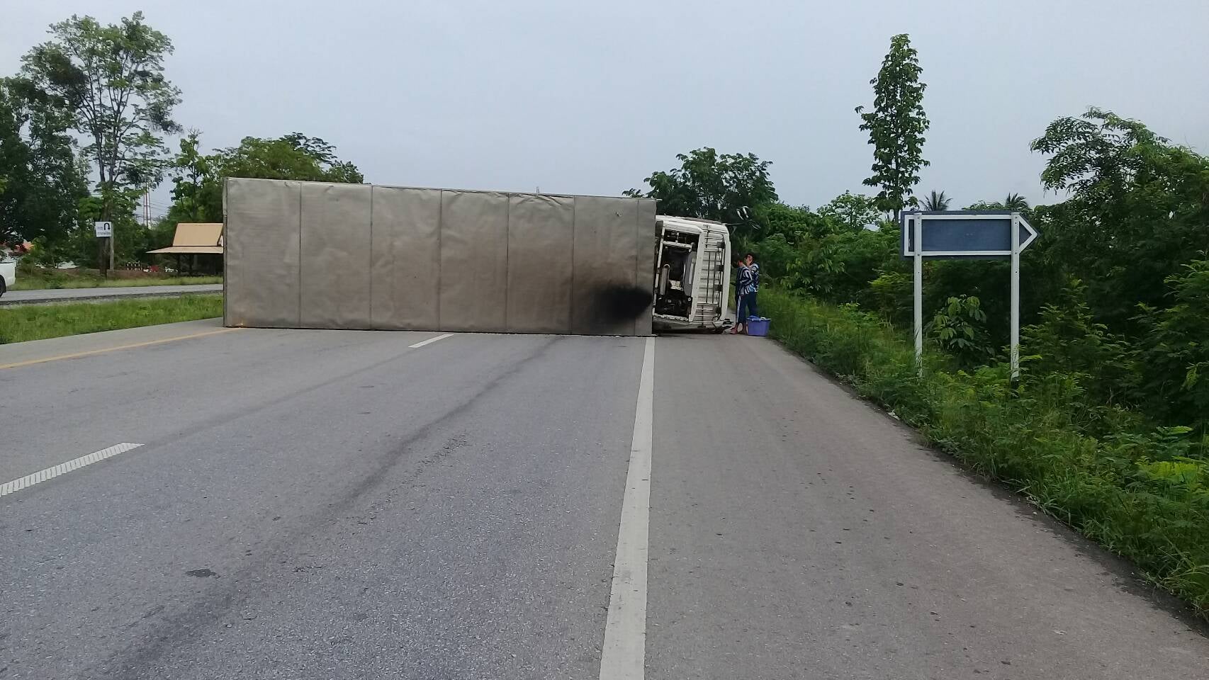 ข่าวประชาสัมพันธ์แขวงทางหลวงกำแพงเพชร "การจราจรผ่านได้ปกติเมื่อเวลา 19.30 น. กรณีรถบรรทุกพลิกคว่ำกีดขวางการจราจร"