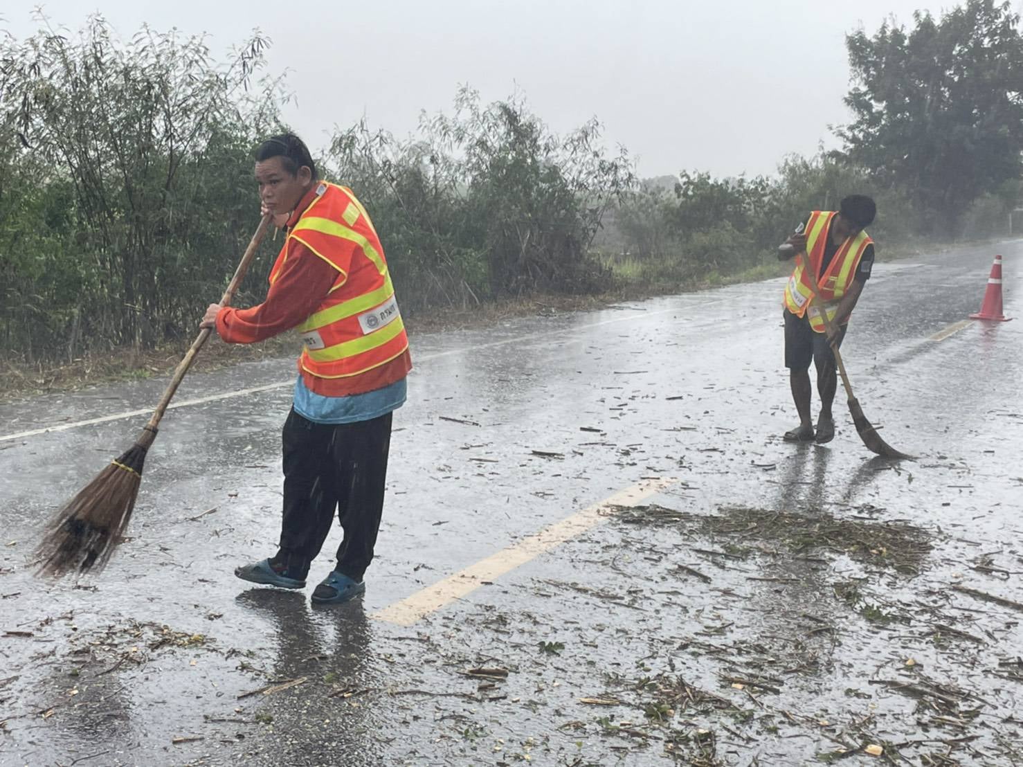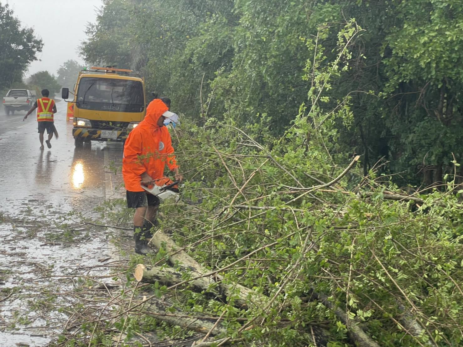 พบเหตุไฟไหม้ข้างทาง ต้นไม้หักโค่น ไฟฟ้าดับ ผิวทางชำรุด