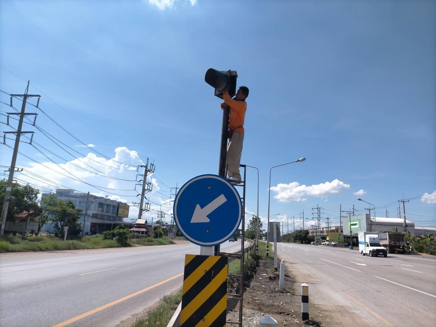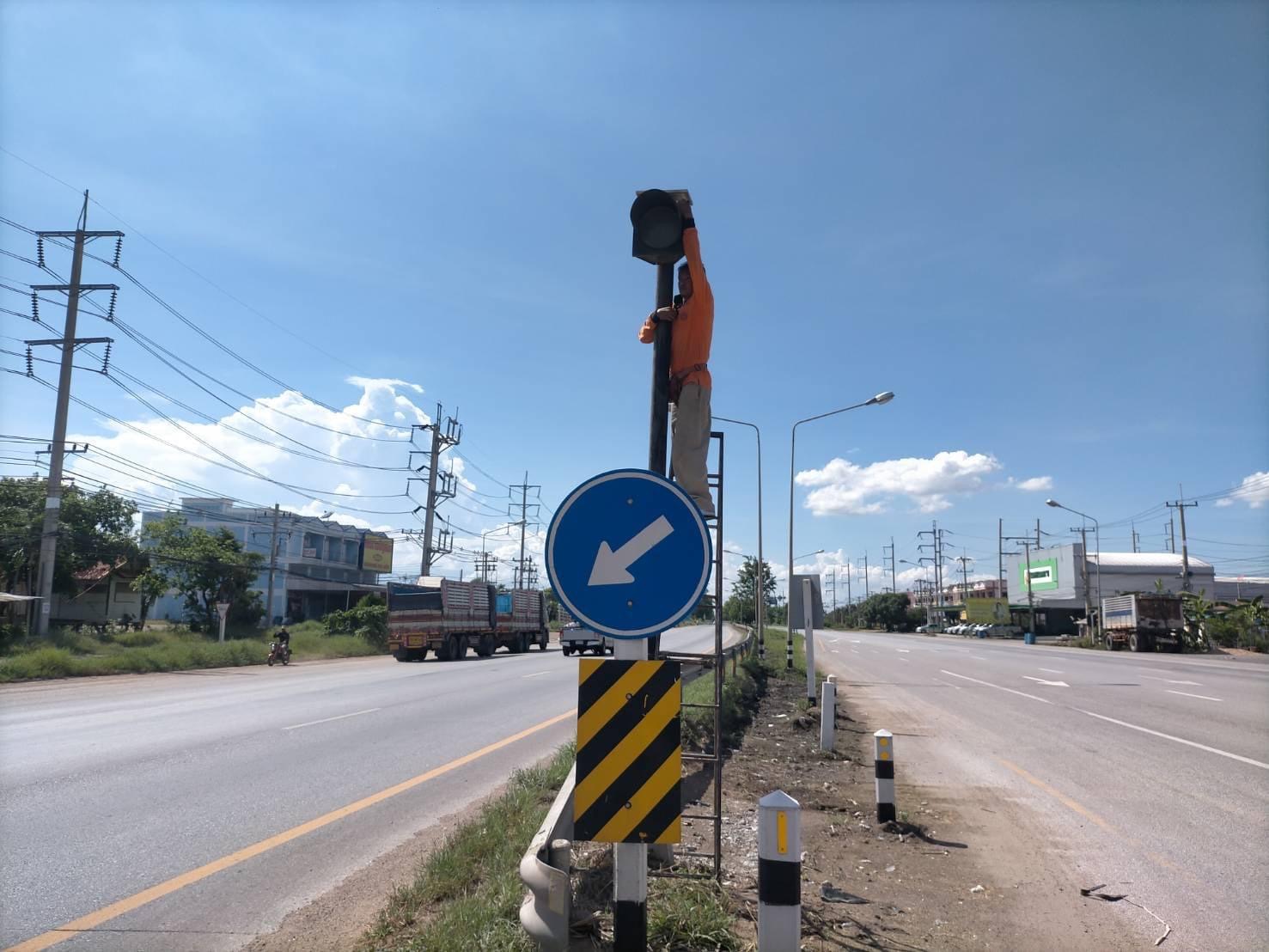 แขวงทางหลวงกำแพงเพชร โดย นายชัยศิริ ผูกใจเพื่อน ผู้อำนวยการแขวงทางหลวงกำแพงเพชร ได้มอบหมายให้งานปรับซ่อม ดำเนินการซ่อมแซมไฟสัญญาณจราจร(กระพริบ) เพื่อความสะดวก และความปลอดภัยแก่ผู้ใช้เส้นทาง