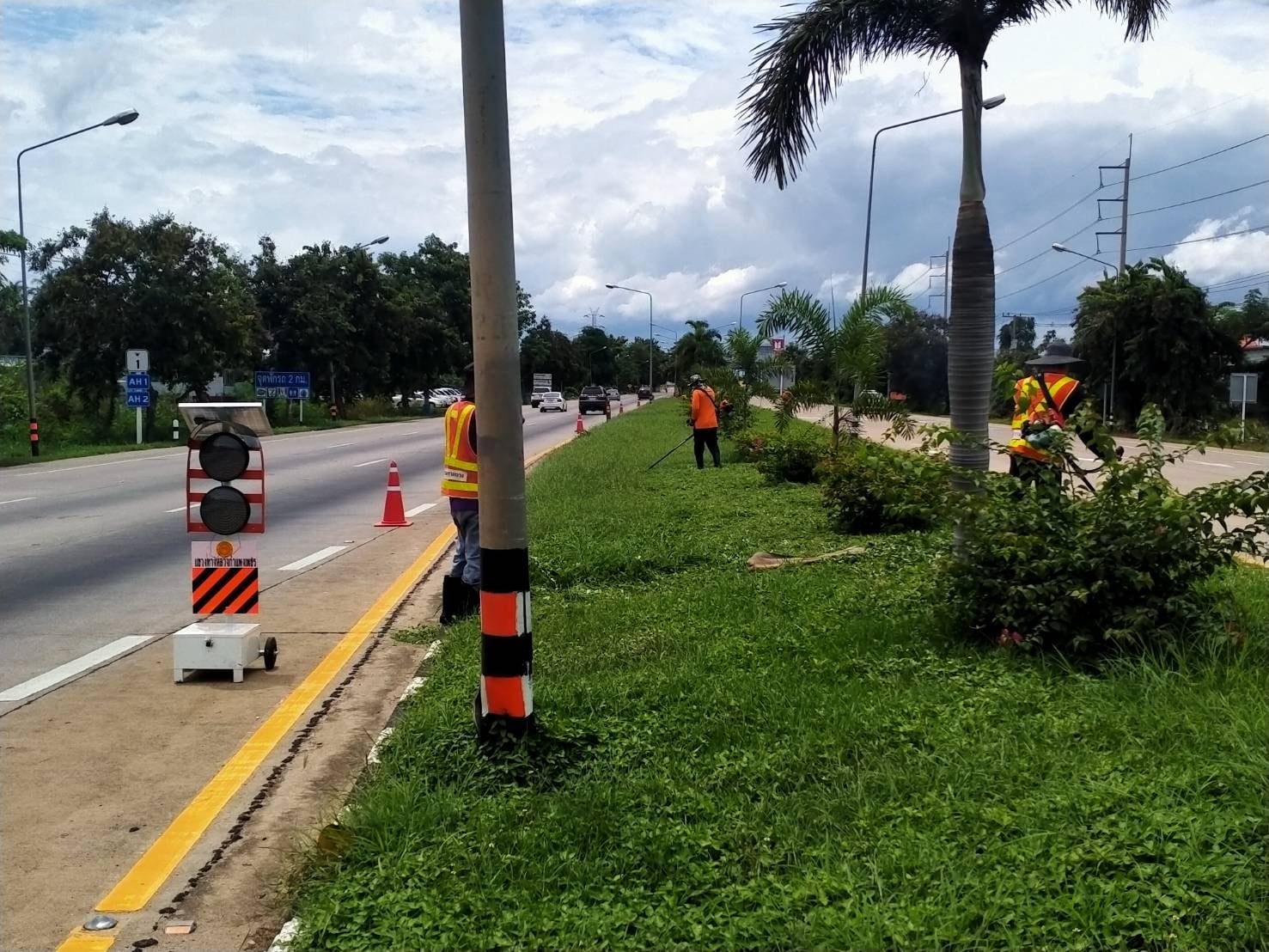 แขวงทางหลวงกำแพงเพชร โดย นายชัยศิริ ผูกใจเพื่อน ผู้อำนวยการแขวงทางหลวงกำแพงเพชร ได้มอบหมายให้หมวดทางโกสัมพีนคร, หมวดทางหลวงบ่อทอง, หมวดทางหลวงนครชุม, หมวดทางหลวงปากคลองลาน และงานวางแผน ดำเนินการตัดหญ้าลาดคันทาง ร่องกลางถนน เกาะกลางถนน ตัดแต่งไม้ดอกไม้ประดับ และตัดแต่งกิ่งต้นไม้ เพื่อให้ความสะดวกและปลอดภัยแก่ผู้ใช้เส้นทาง