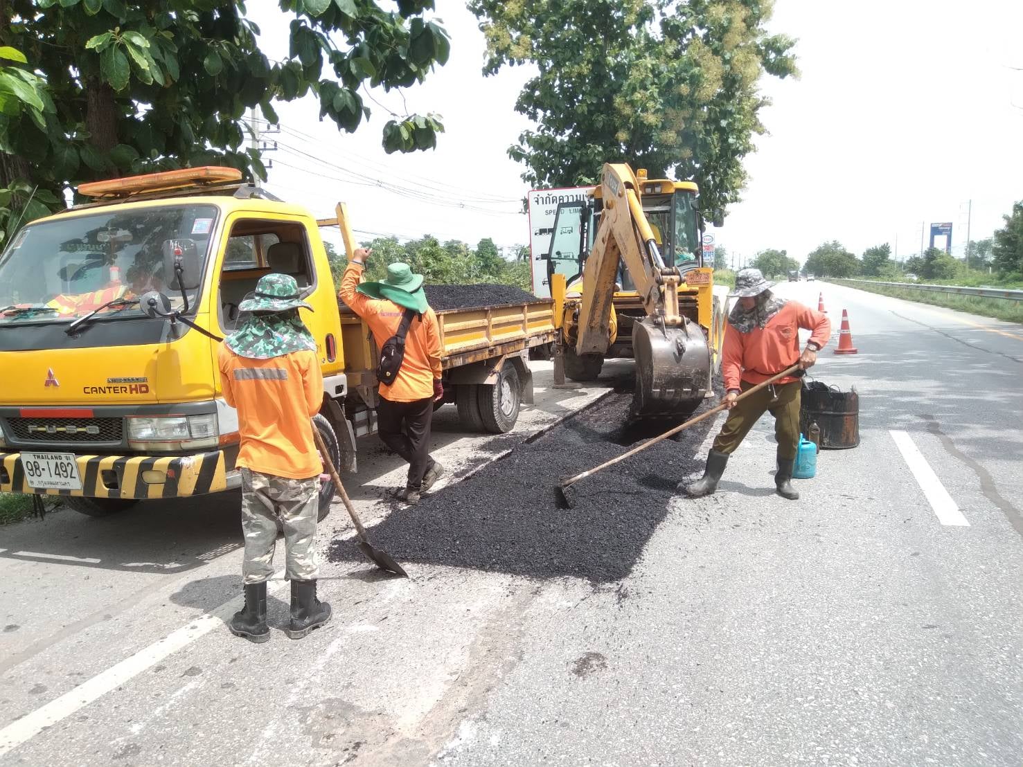 แขวงทางหลวงกำแพงเพชร โดย หมวดทางหลวงคลองขลุง, หมวดทางหลวงโกสัมพีนคร, หมวดทางหลวงคลองลานพัฒนา ดำเนินการปะซ่อมผิวทาง เพื่อให้ความสะดวก และปลอดภัยแก่ผู้ใช้เส้นทาง