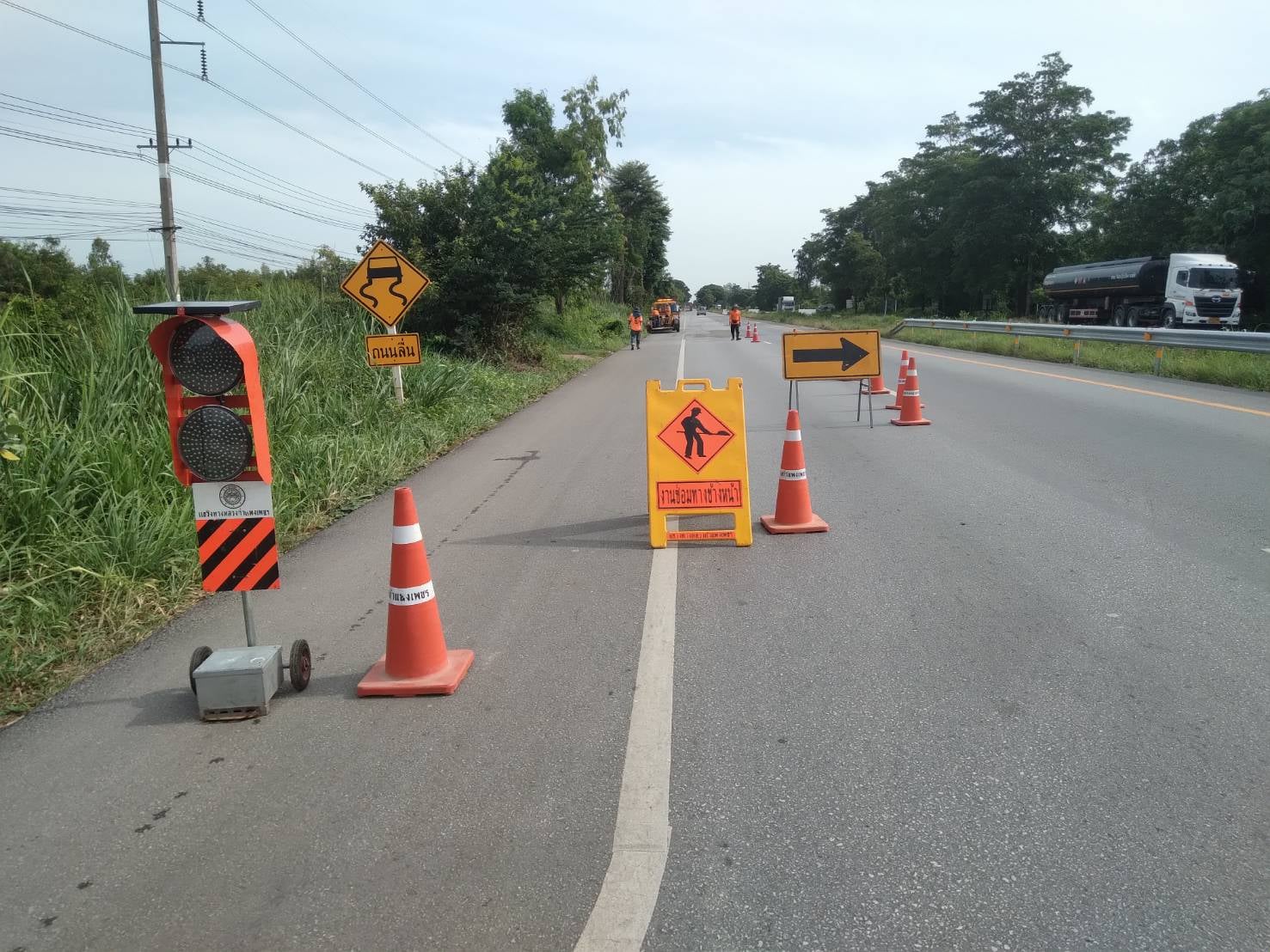แขวงทางหลวงกำแพงเพชร โดย หมวดทางหลวงคลองขลุง ดำเนินการปะซ่อมผิวทาง ทางหลวงหมายเลข 1 ตอนโนนปอแดง - ปากดง ที่ กม.410+800 เพื่อให้ความสะดวก และปลอดภัยแก่ผู้ใช้เส้นทาง
