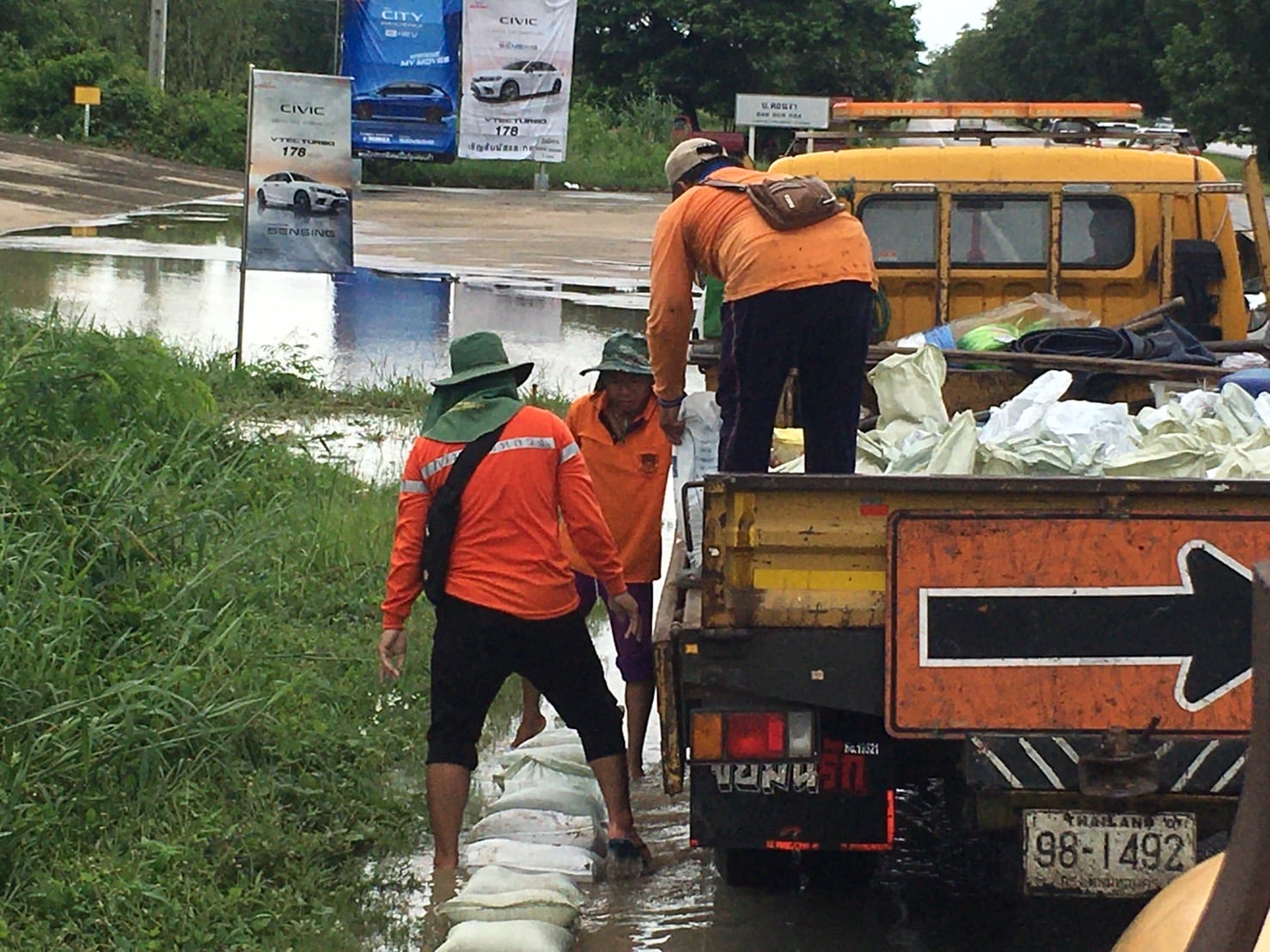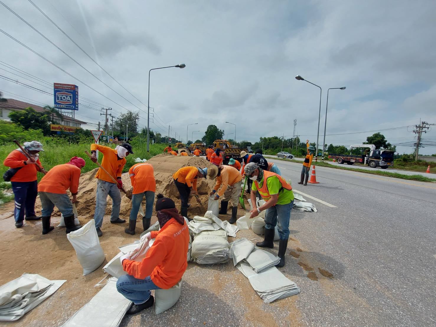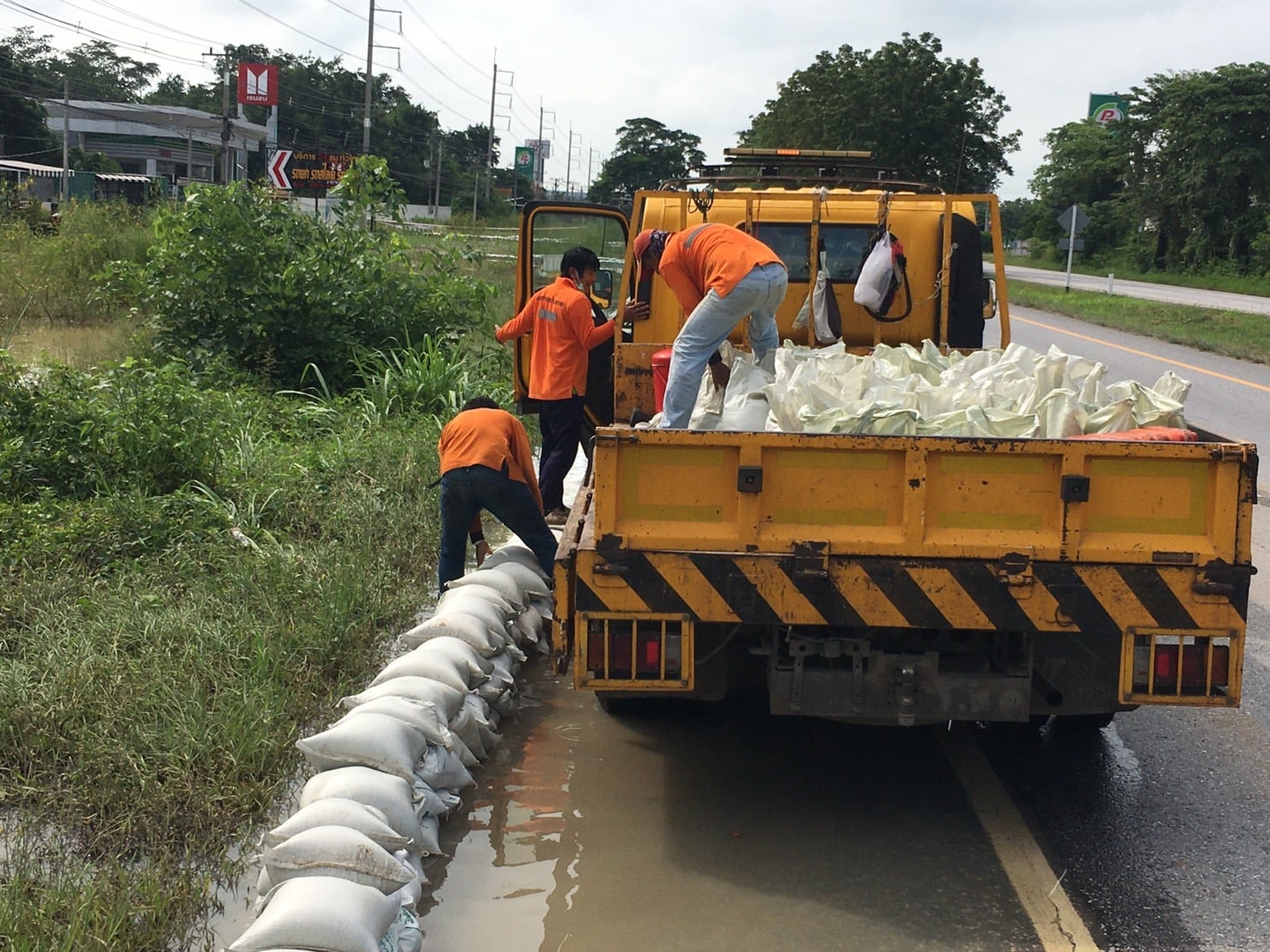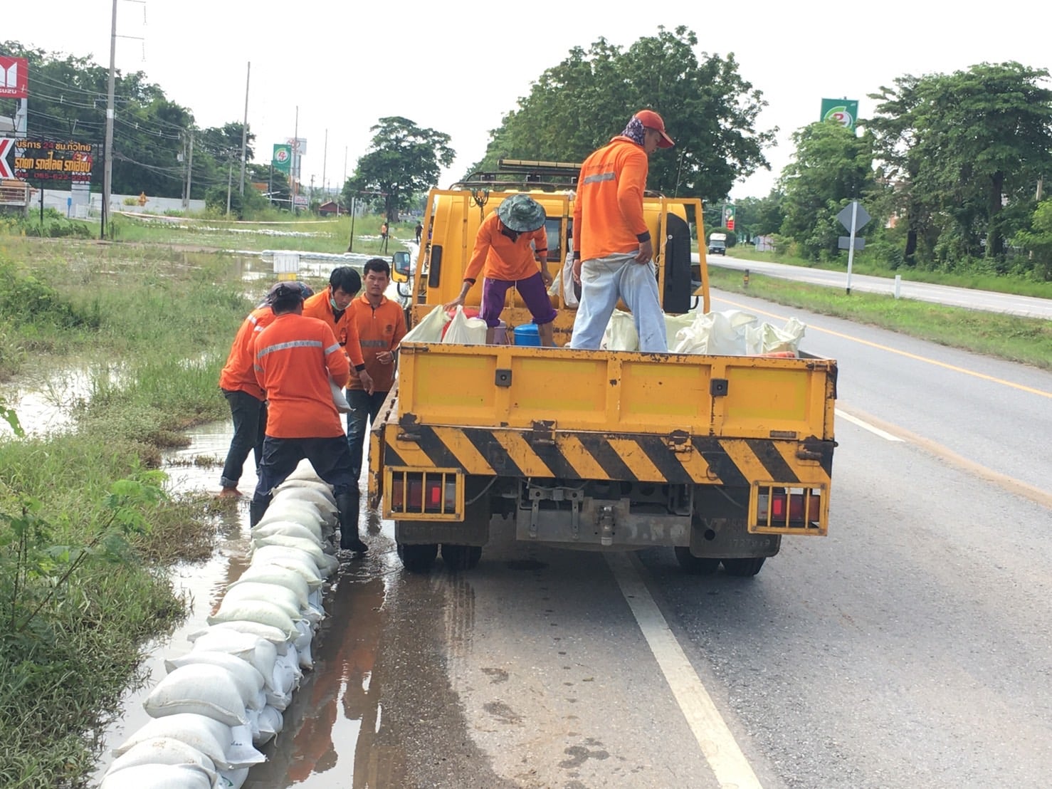 แขวงทางหลวงกำแพงเพชร โดย หมวดทางหลวงคลองขลุง ร่วมกับ หมวดทางหลวงบ่อทอง, หมวดทางหลวงนครชุม, หมวดทางหลวงคลองลานพัฒนา, หมวดทางหลวงปากคลองลาน และหมวดทางหลวงคณฑี ดำเนินการเรียงกระสอบทรายเพื่อสนับสนุนหมวด ทางหลวงหมายเลข 1 ตอน โนนปอแดง - ปากดง ระหว่าง กม.391+000 - กม.392+000 ด้านซ้ายทาง เพื่อให้ความสะดวกและปลอดภัยแก่ผู้ใช้เส้นทาง