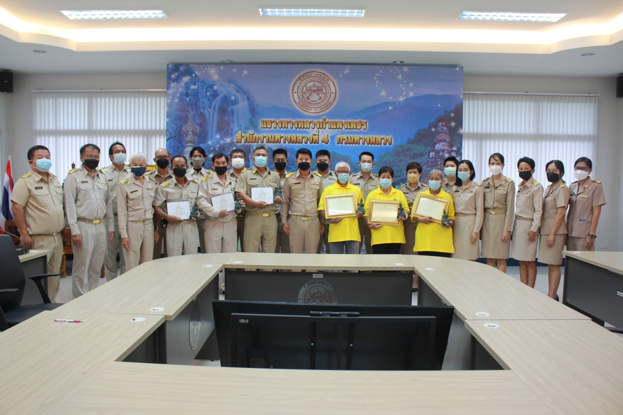 นายชัยศิริ ผูกใจเพื่อน เป็นประธานมอบโล่ที่ระลึกแก่เจ้าหน้าที่แขวงทางหลวงกำแพงเพชร ที่เกษียณอายุราชการประจำปี 2564