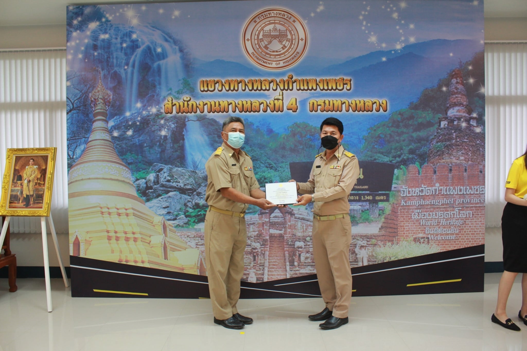วันที่ 23 กันยายน 2564 เวลา 10.00 น. นายชัยศิริ ผูกใจเพื่อน ให้เป็นประธานมอบโล่ที่ระลึกแก่เจ้าหน้าที่แขวงทางหลวงกำแพงเพชร ที่เกษียณอายุราชการประจำปี 2564 ณ ห้องประชุมชั้น 3 แขวงทางหลวงกำแพงเพชร