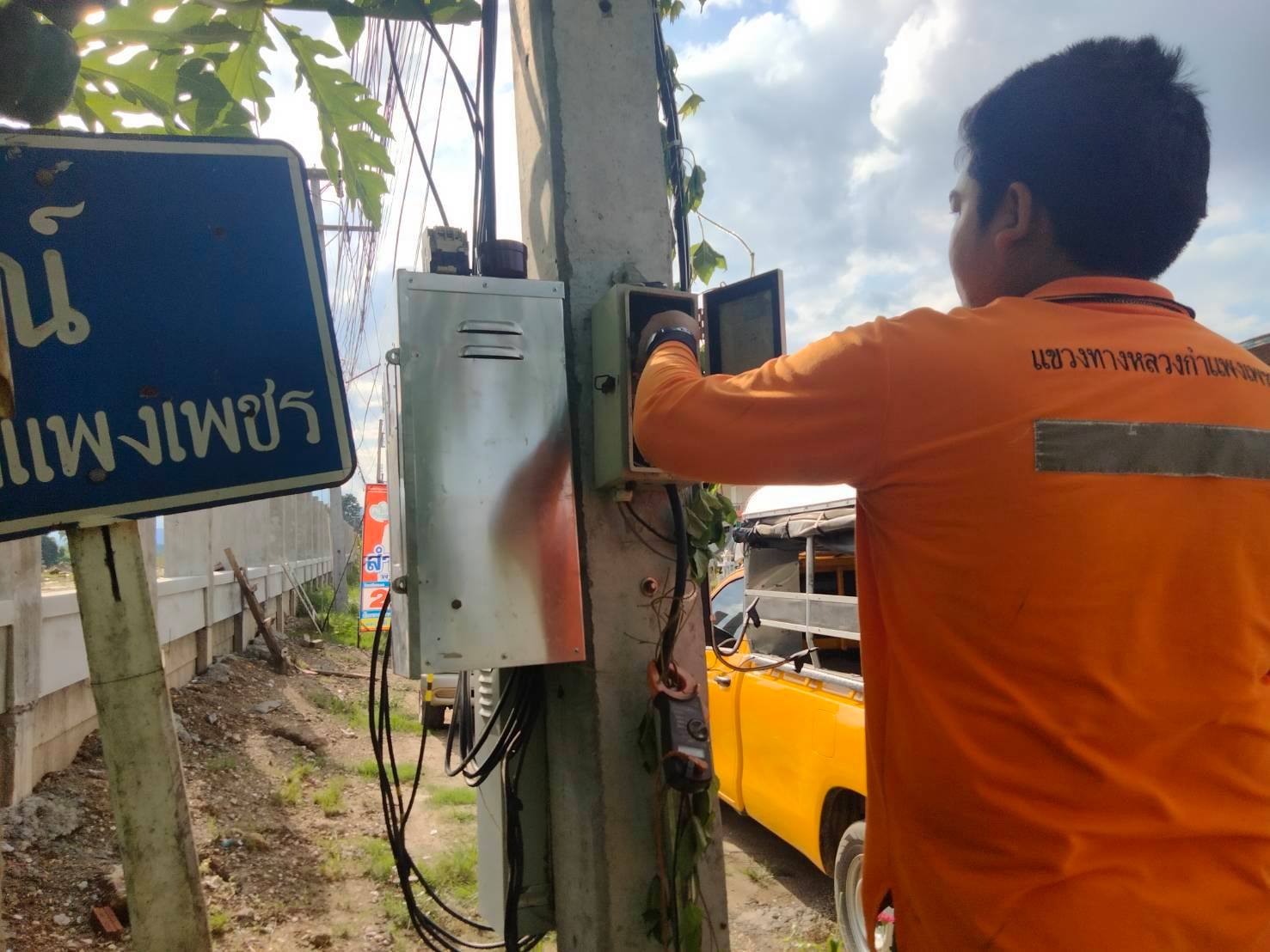 ข่าวประชาสัมพันธ์แขวงทางหลวงกำแพงเพชร วันที่ 26 ตุลาคม 2564 "แขวงฯ ดำเนินการซ่อมแซมเปลี่ยนอุปกรณ์ไฟฟ้าแสงสว่าง"