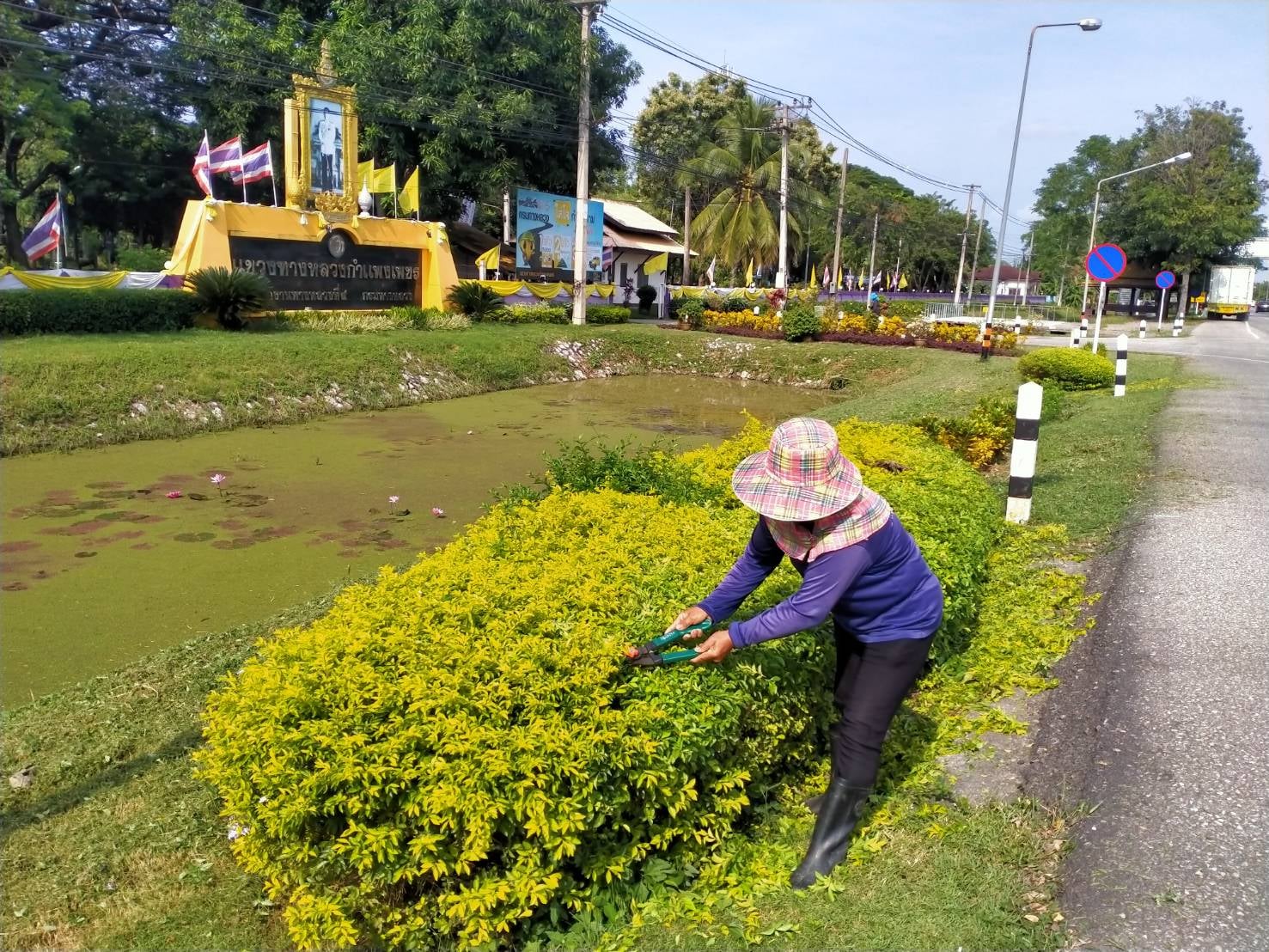 แขวงทางหลวงกำแพงเพชร โดย หมวดทางหลวงคลองขลุง, หมวดทางหลวงโกสัมพีนคร, หมวดทางหลวงนครชุม และงานวางแผน ดำเนินการตัดหญ้าลาดคันทาง ร่องกลางถนน เกาะกลางถนน ตัดแต่งไม้ดอกไม้ประดับ และตัดแต่งกิ่งต้นไม้ เพื่อให้ความสะดวกและปลอดภัยแก่ผู้ใช้เส้นทาง