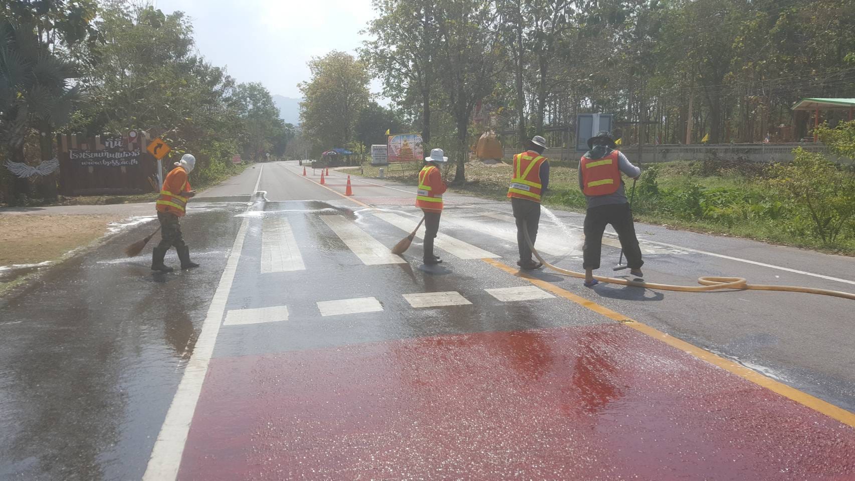 แขวงทางหลวงกำแพงเพชร ดำเนินการปรับปรุงทางม้าลาย โดยดำเนินการตีเส้นและทำความสะอาด เพื่อความปลอดภัย และเพื่อป้องกันอุบัติเหตุบนทางหลวง