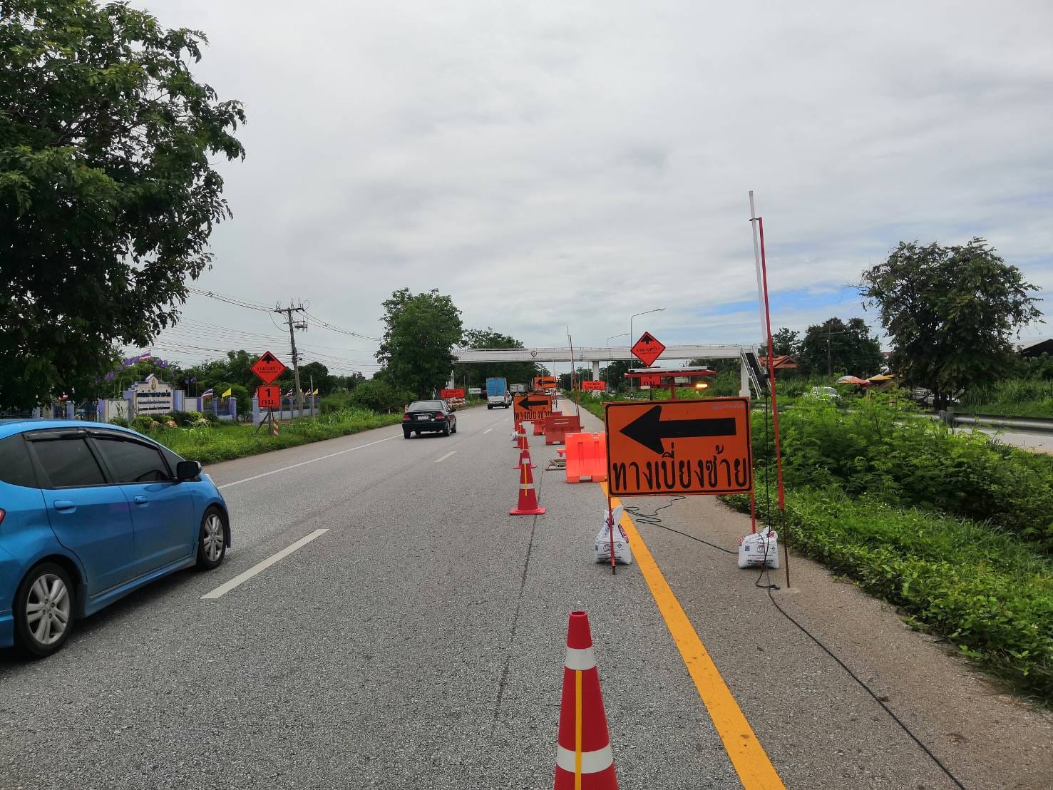 เบี่ยงการจราจร บนทางหลวงหมายเลข 1 ในพื้นที่ ตำบลไตรตรึงษ์ อำเภอเมือง จังหวัดกำแพงเพชร