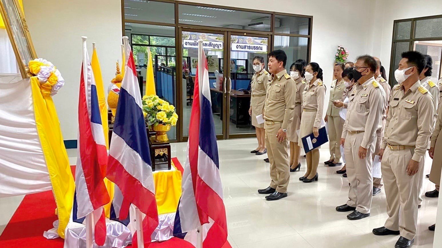 นายชัยศิริ ผูกใจเพื่อน ผู้อำนวยการแขวงทางหลวงกำแพงเพชร นำคณะข้าราชการ และเจ้าหน้าที่ในสังกัด กล่าวคำถวายสัตย์ปฏิญาณ เพื่อเป็นข้าราชการที่ดีและพลังของแผ่นดิน