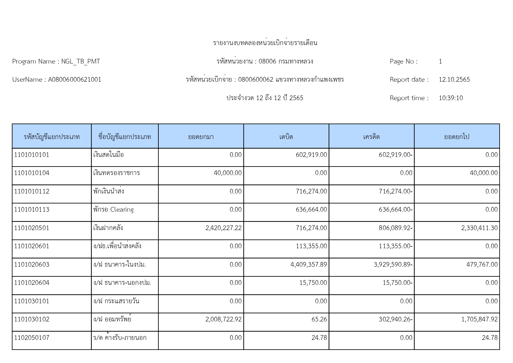 แขวงทางหลวงกำแพงเพชร แจ้งประชาสัมพันธ์รายงานงบทดลองปีงบประมาณ 2565