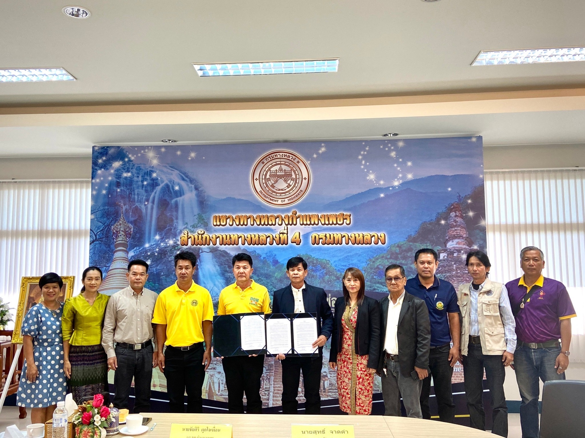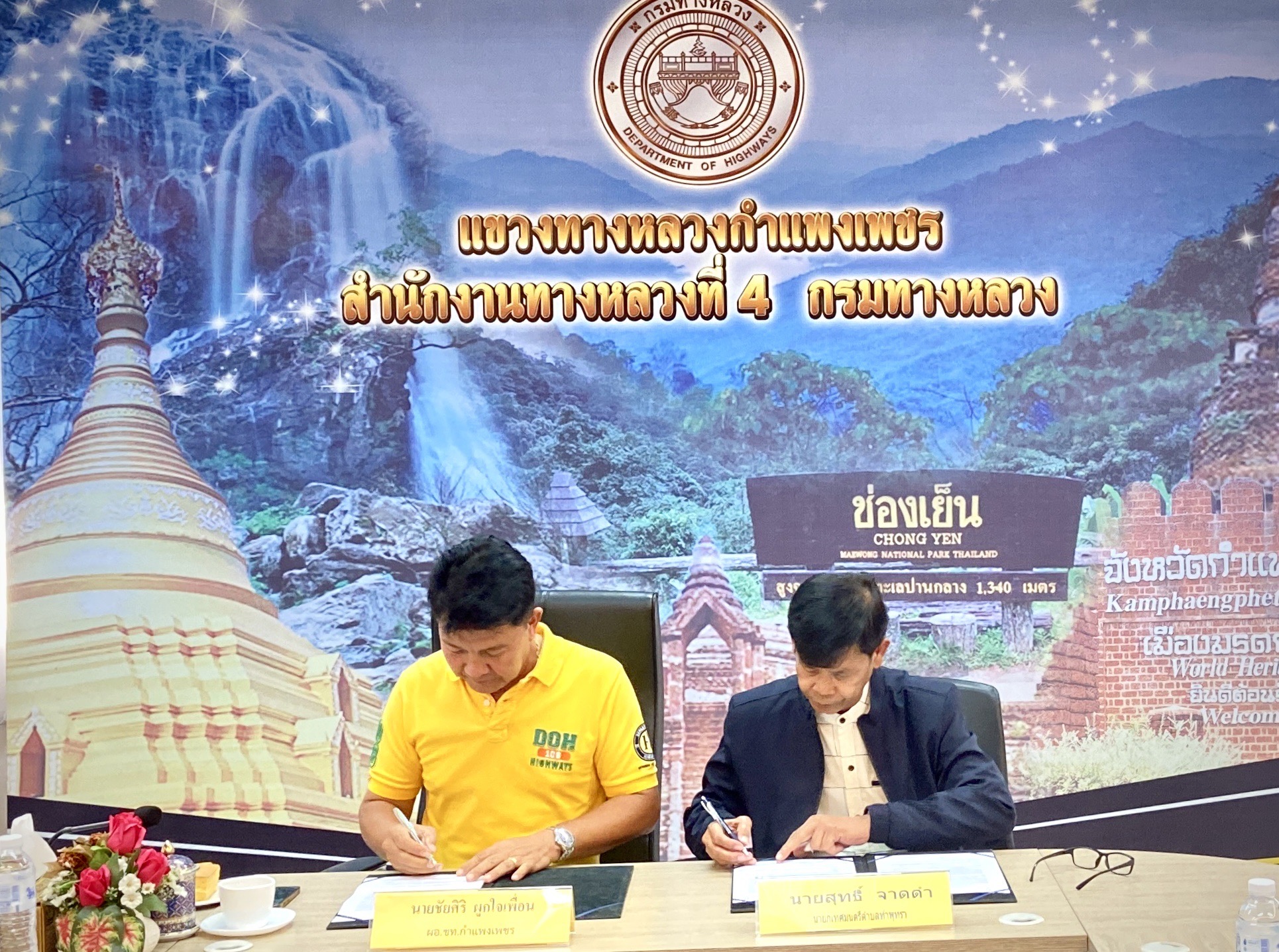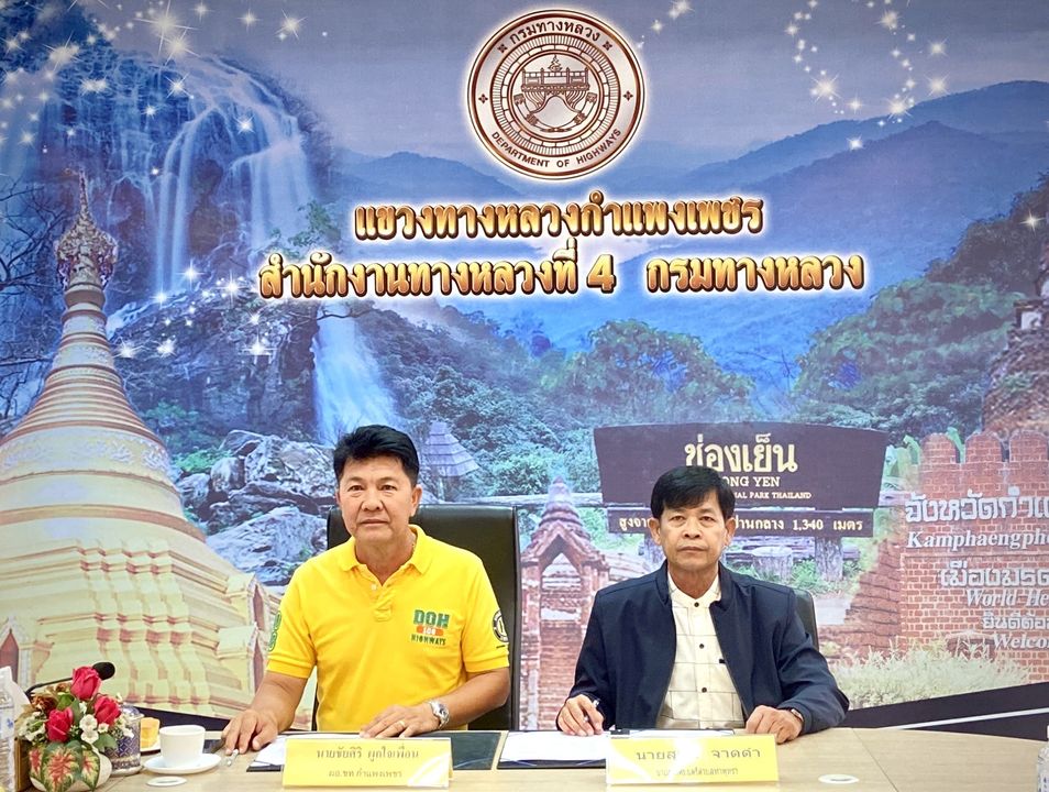 นายชัยศิริ ผูกใจเพื่อน ผู้อำนวยการแขวงทางหลวงกำแพงเพชร พร้อมด้วยนายสุทธิ์ จาดดำ นายกเทศมนตรีตำบลท่าพุทรา ได้ร่วมกันจัดทำและลงนามบันทึกข้อตกลง (MOU) โครงการซ่อมแซมและปรับปรุงผิวจราจรหินคลุกถนนคู่ขนานถนนพหลโยธิน ในการให้เทศบาลตำบลท่าพุทรา เข้าไปปรับปรุงดูแลรักษาบริเวณพื้นที่ผิวจราจร ในเขตทางหลวงหมายเลข 1 ตอนโนนปอแดง –ปากดง ระหว่าง กม.423+000 –กม.423+837 และระหว่าง กม.424+300 – กม.424+717 ด้านซ้ายทาง ท้องที่ตำบลท่าพุทรา อำเภอคลองขลุง จังหวัดกำแพงเพชร เพื่อลดปัญหาเรื่องฝุ่นละออง PM 2.5 ที่เกิดขึ้นในช่วงหน้าแล้ง เพิ่มประสิทธิภาพในการเดินทาง และอำนวยความสะดวกปลอดภัยแก่ประชาชนผู้ใช้เส้นทาง ณ ห้องประชุมสำนักงานแขวงทางหลวงกำแพงเพชร