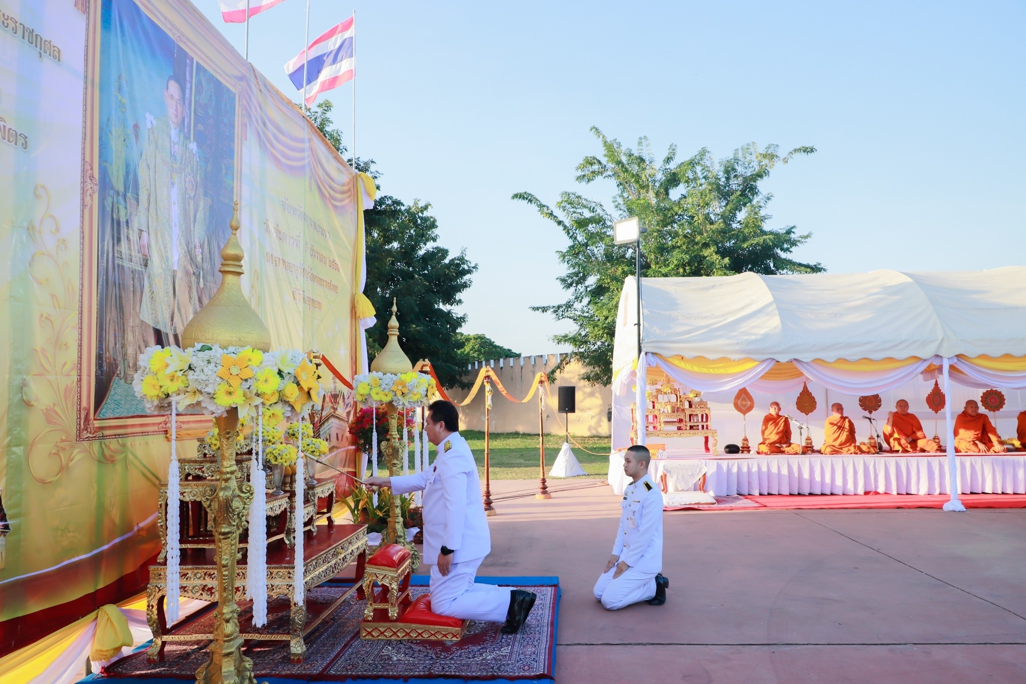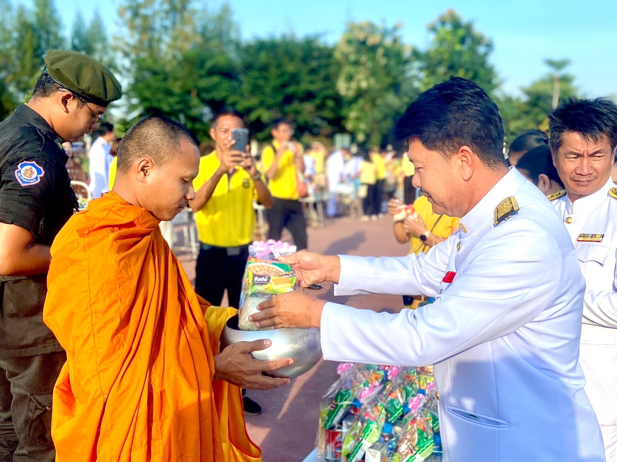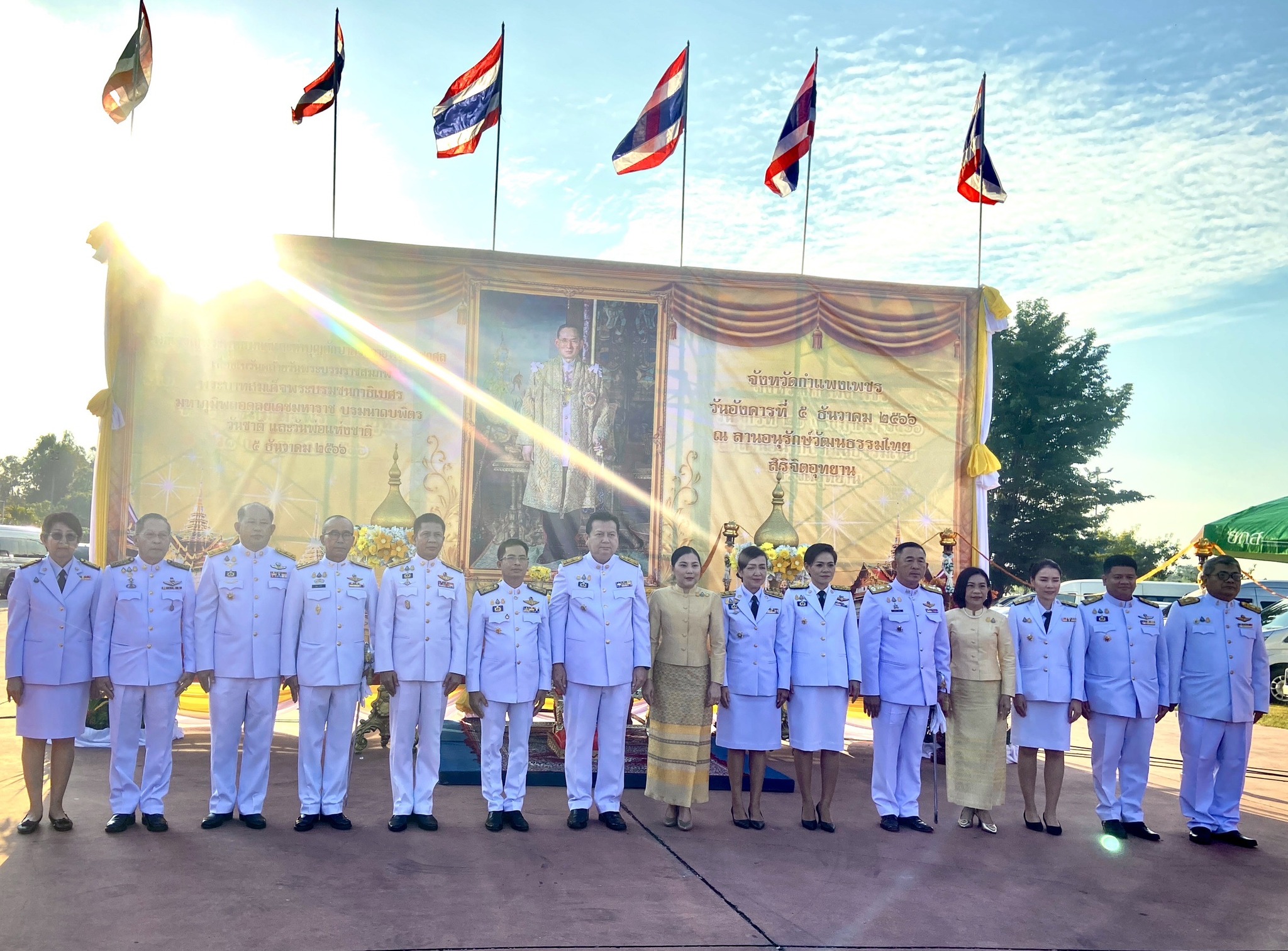 นายชัยศิริ ผูกใจเพื่อน ผู้อำนวยการแขวงทางหลวงกำแพงเพชร นำคณะเจ้าหน้าที่ร่วมพิธีเจริญพระพุทธมนต์และทำบุญตักบาตรถวายพระราชกุศล เนื่องในวันคล้ายวันพระบรมราชสมภพ พระบาทสมเด็จพระบรมชนกาธิเบศร มหาภูมิพลอดุลยเดชมหาราช บรมนาถบพิตร วันชาติ และวันพ่อแห่งชาติ ๕ ธันวาคม ๒๕๖๖ ณ ลานอนุรักษ์วัฒนธรรมไทย สิริจิตอุทยาน และเวลา ๐๘.๓๐ น. ร่วมพิธีวางพานพุ่มดอกไม้ถวายราชสักการะ ณ หอประชุมใหญ่ ศูนย์ราชการจังหวัดกำแพงเพชร โดยนายชาธิป รุจนเสรี ผู้ว่าราชการจังหวัดกำแพงเพชร เป็นประธาน