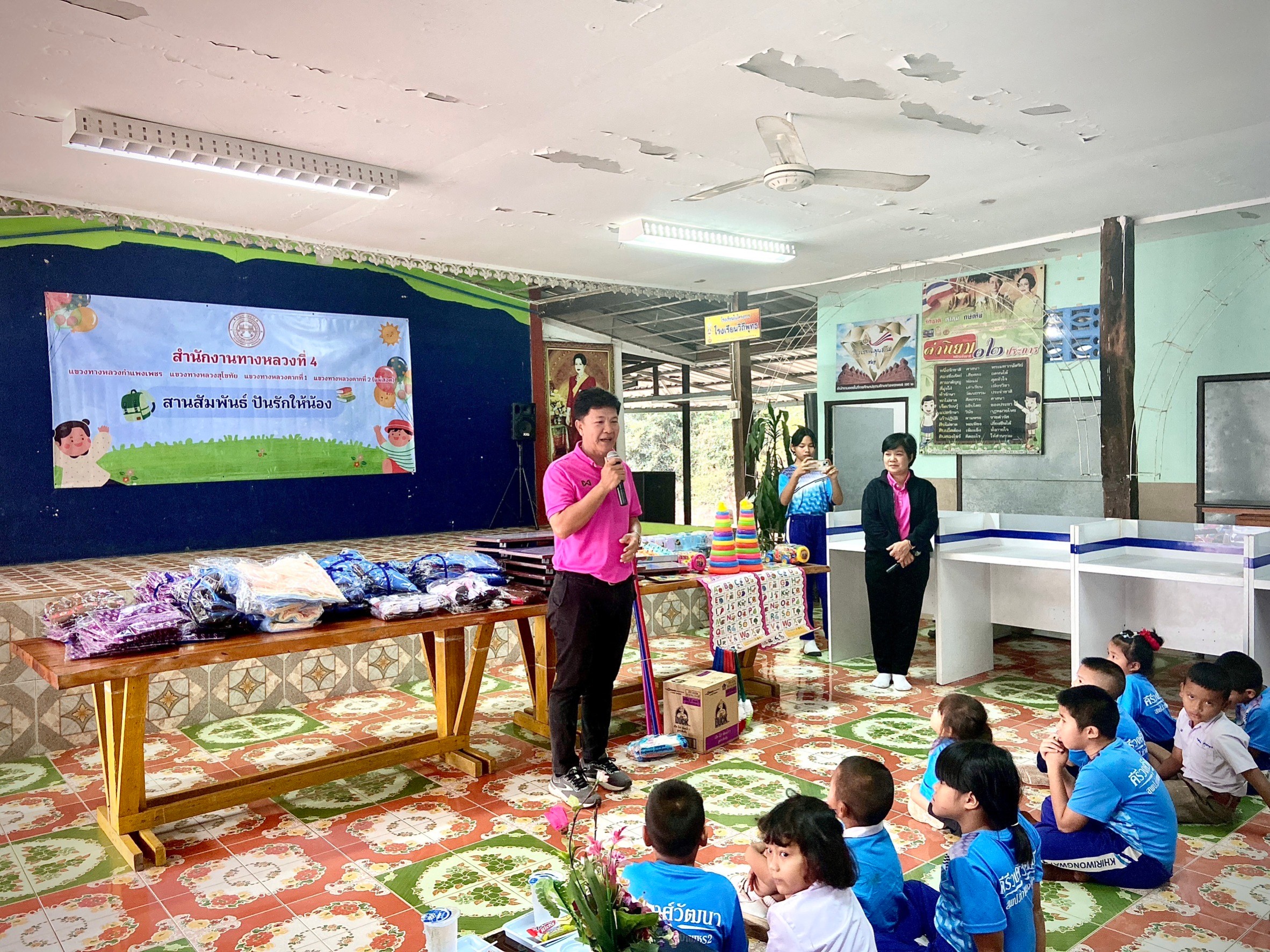 สำนักงานทางหลวงที่ 4 กรมทางหลวง นำโดย นายสิทธิโชค ลี้มิ่งสวัสดิ์ ผู้อำนวยการสำนักงานทางหลวงที่ 4(ตาก) พร้อมด้วยผู้อำนวยการแขวงทางหลวงในสังกัด, คณะผู้บริหาร และเจ้าหน้าที่ในสังกัด ร่วมจัดกิจกรรม “สานสัมพันธ์ ปันรักให้น้อง” ประจำปี 2567 โดยได้มีการมอบอุปกรณ์การเรียน อุปกรณ์กีฬา และมอบสิ่งของอื่นๆ ให้แก่นักเรียน โรงเรียนคีรีวงศ์วัฒนา ตำบลปางมะค่า อำเภอขาณุวรลักษบุรี จังหวัดกำแพงเพชร