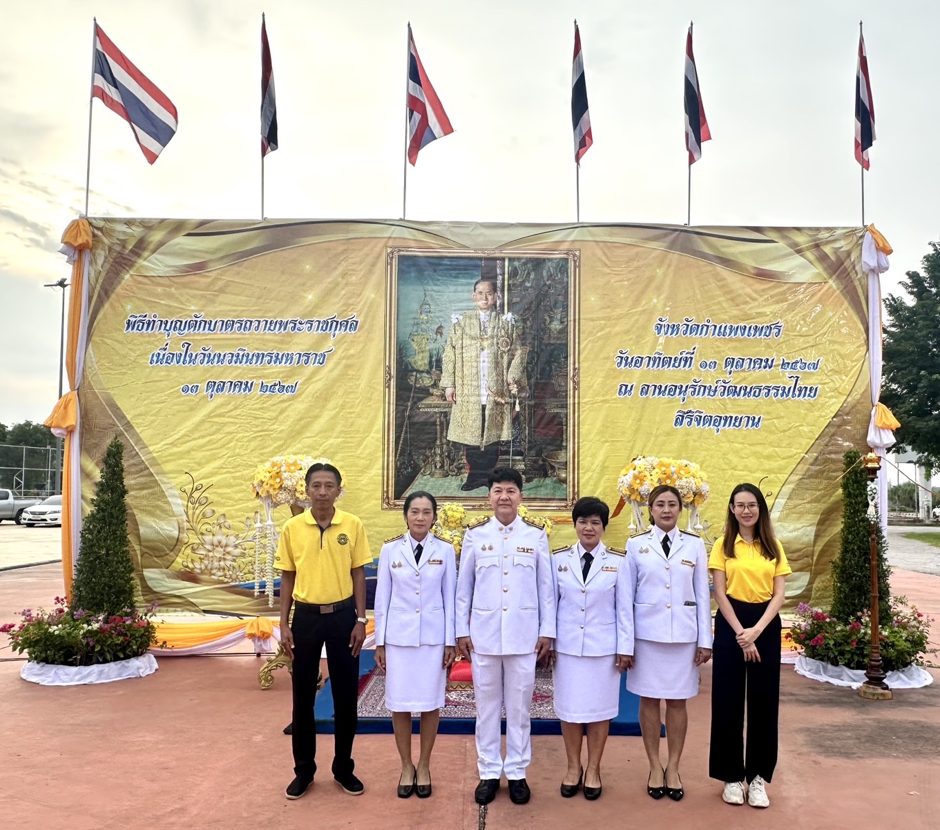 นายชัยศิริ ผูกใจเพื่อน ผู้อำนวยการแขวงทางหลวงกำแพงเพชร นำคณะเจ้าหน้าที่ในสังกัด ร่วมพิธีเจริญพระพุทธมนต์ และทำบุญตักบาตรถวายพระราชกุศล เนื่องในวันนวมินทรมหาราช 13 ตุลาคม 2567 เพื่อน้อมรำลึกถึงพระบาทสมเด็จพระบรมชนกาธิเบศร มหาภูมิพลอดุลยเดชมหาราช บรมนาถบพิตร ผู้ทรงมีพระมหากรุณาธิคุณล้นเกล้าล้นกระกระหม่อมแก่อาณาประชาราษฎร์ตลอดรัชสมัยของพระองค์ โดยมีนายชาธิป รุจนเสรี ผู้ว่าราชการจังหวัดกำแพงเพชร เป็นประธานในพิธีฯ ณ ลานอนุรักษ์วัฒนธรรมไทย สิริจิตอุทยาน
