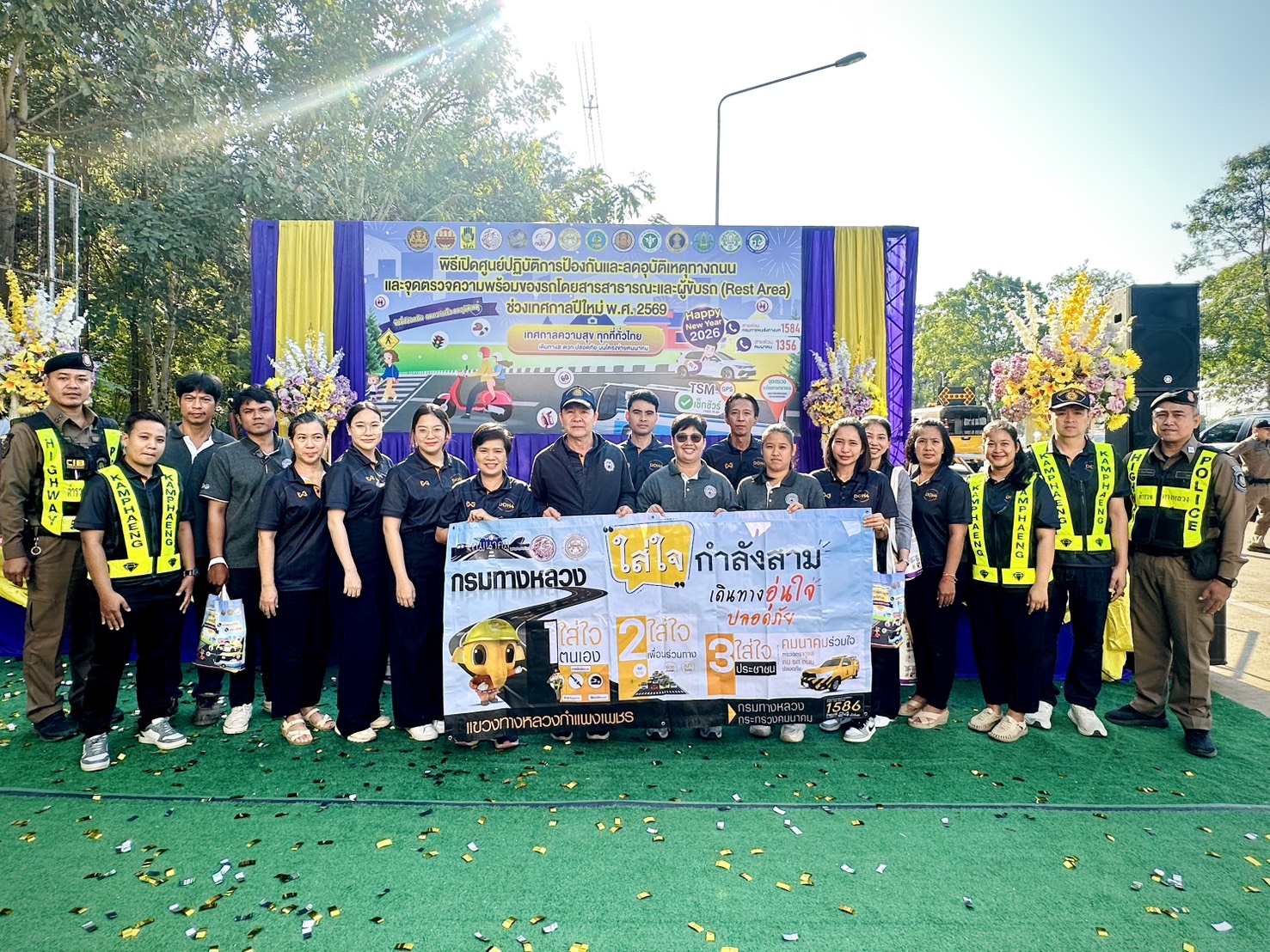 นายชัยศิริ ผูกใจเพื่อน ผู้อำนวยการแขวงทางหลวงกำแพงเพชร พร้อมด้วยนายเดชา กุลกิจวโรภาส รองผู้อำนวยการแขวงทางหลวงกำแพงเพชร ฝ่ายปฏิบัติการ, หมวดทางหลวงโกสัมพีนคร และเจ้าหน้าที่ในสังกัด ร่วมพิธีเปิดศูนย์ปฏิบัติการป้องกันและลดอุบัติเหตุทางถนน และจุดตรวจความพร้อมของรถโดยสารสาธารณะและผู้ขับรถ (Rest Area) ช่วงเทศกาลปีใหม่ พ.ศ.2569 รวมทั้งให้บริการประชาชนด้านความสะดวกและความปลอดภัยในการเดินทาง บริเวณทางหลวงหมายเลข 1 ตอนนครชุม–วังเจ้า ที่ กม.465+656 (ด้านซ้ายทาง) หน้างานสวนป่ากำแพง องค์การอุตสาหกรรมป่าไม้ ตำบลทรงธรรม อำเภอเมือง จังหวัดกำแพงเพชร โดยมี นายชาธิป รุจนเสรี ผู้ว่าราชการจังหวัดกำแพงเพชร เป็นประธานในพิธีฯ