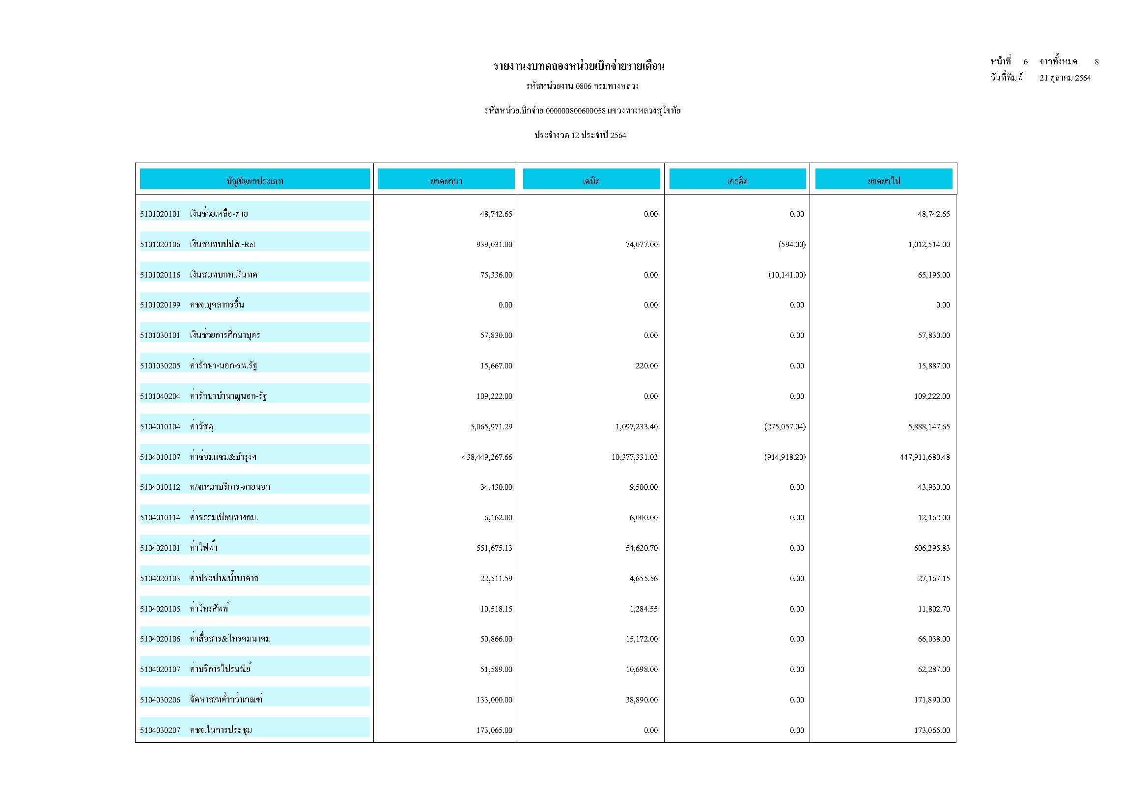 ข้อมูลข่าว : งบทดลองประจำเดือนกันยายน 2564 และรายละเอียดการบัญชีที่สำคัญประกอบงบทดลอง