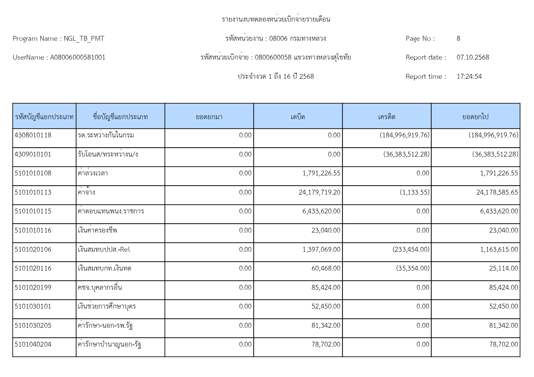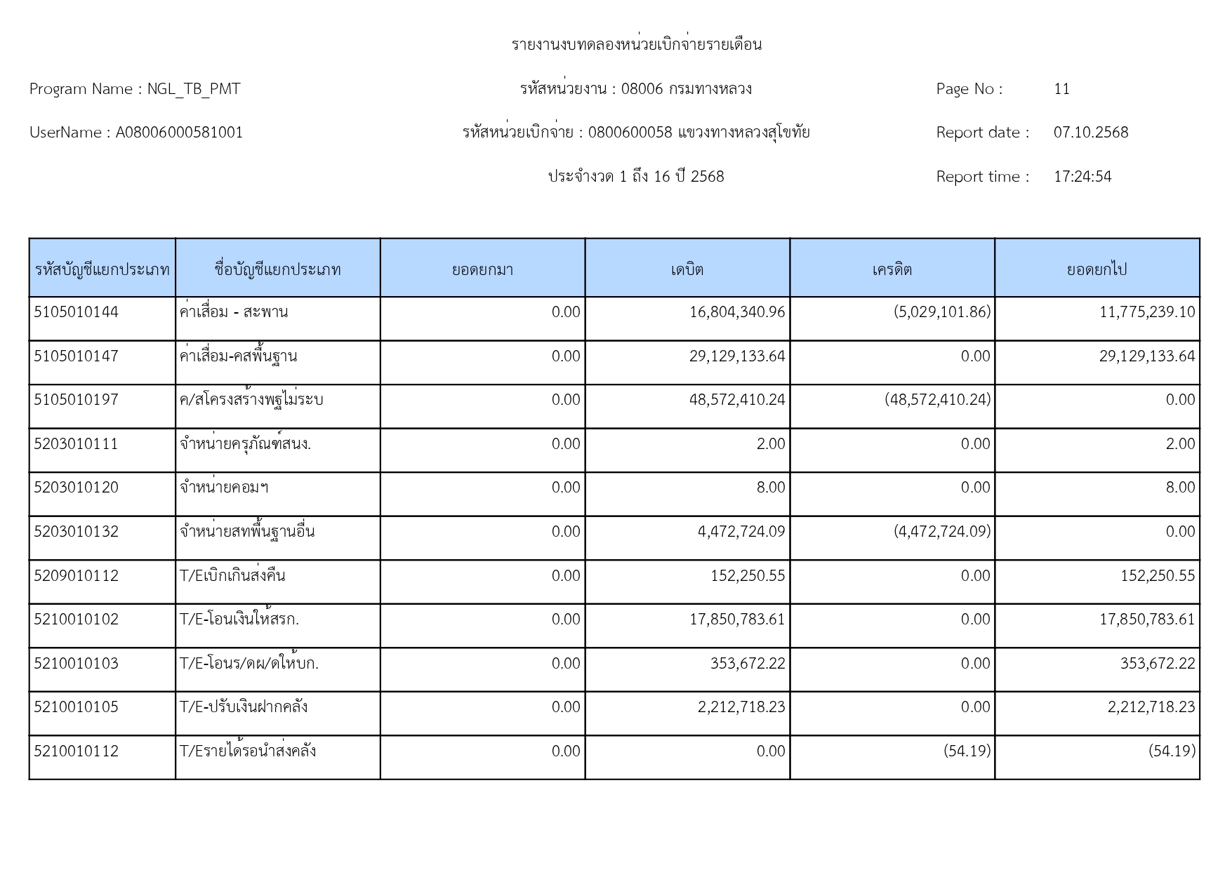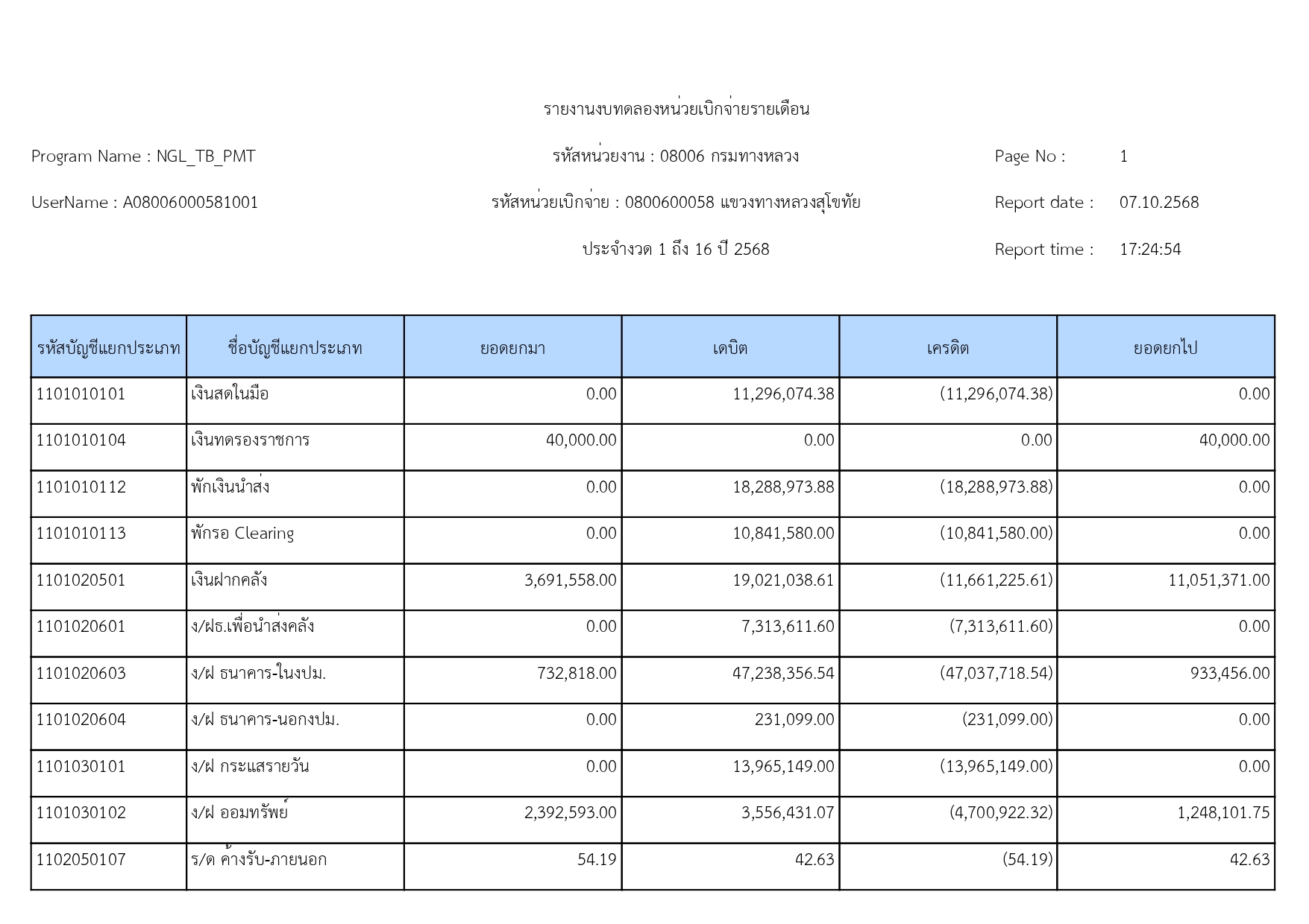 ข้อมูลข่าว : รายละเอียดประกอบรายการบัญชีที่สำคัญของงบทดลอง แขวงทางหลวงสุโขทัย ณ วันที่ 30 กันยายน 2568