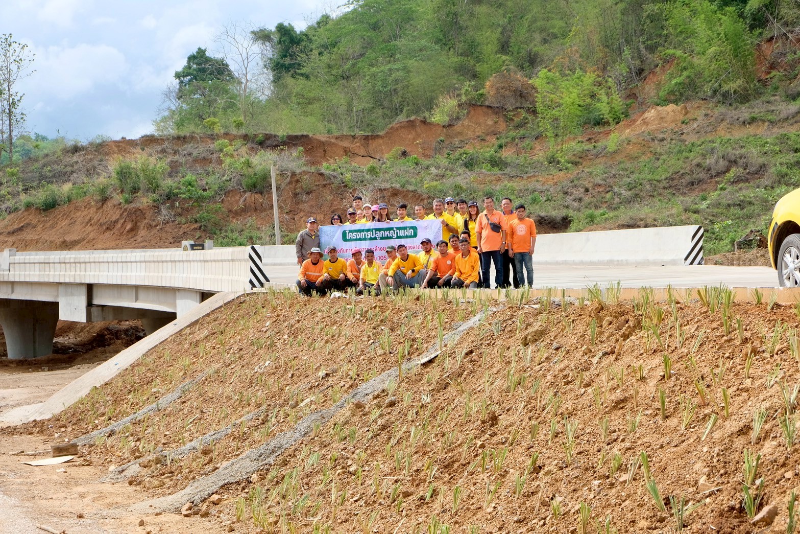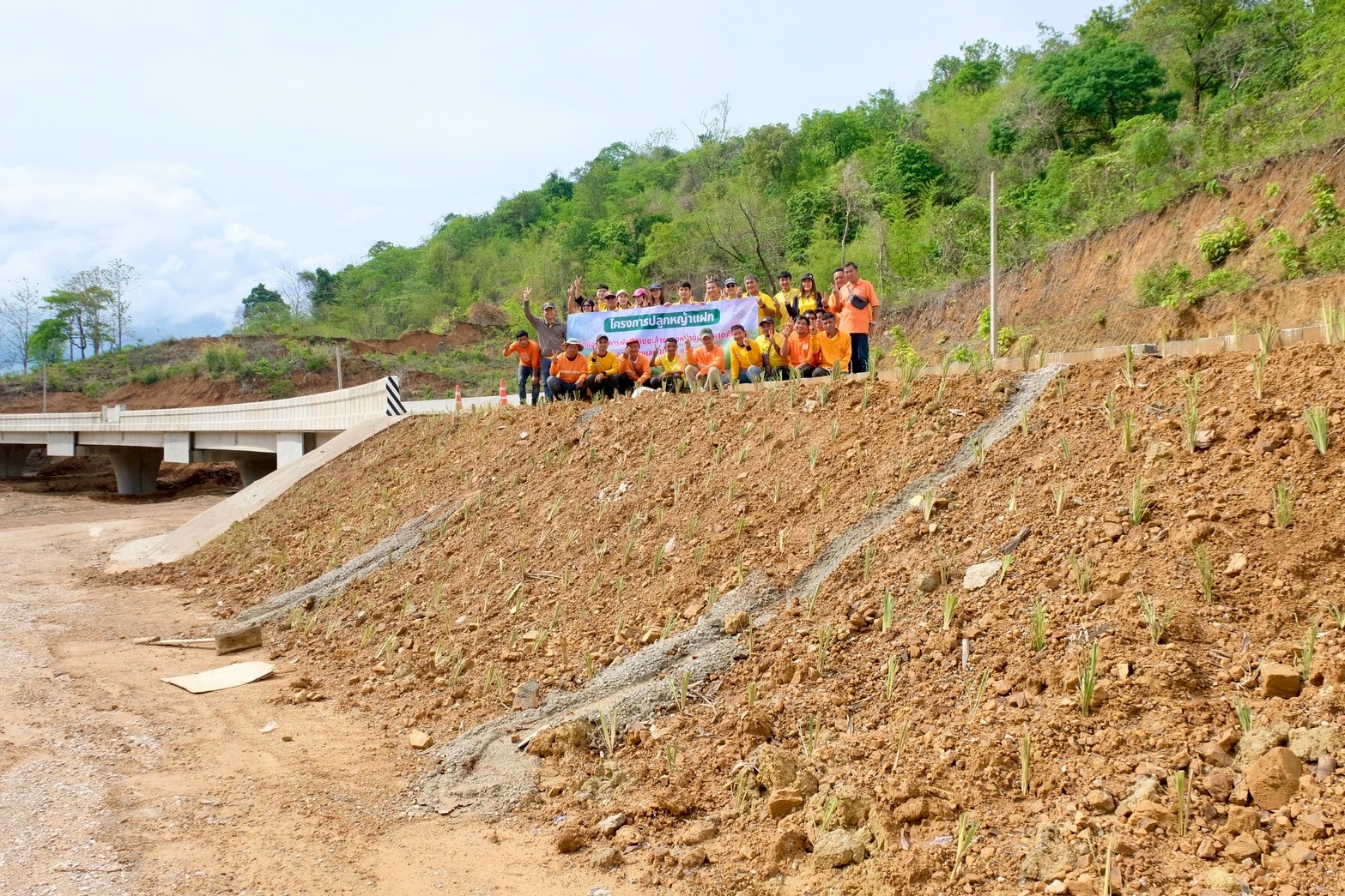 ได้ร่วมจัดโครงการปลูกหญ้าแฝก เพื่อป้องกันการพังทลายชะล้างของหน้าดินเชิงลาดคันทาง